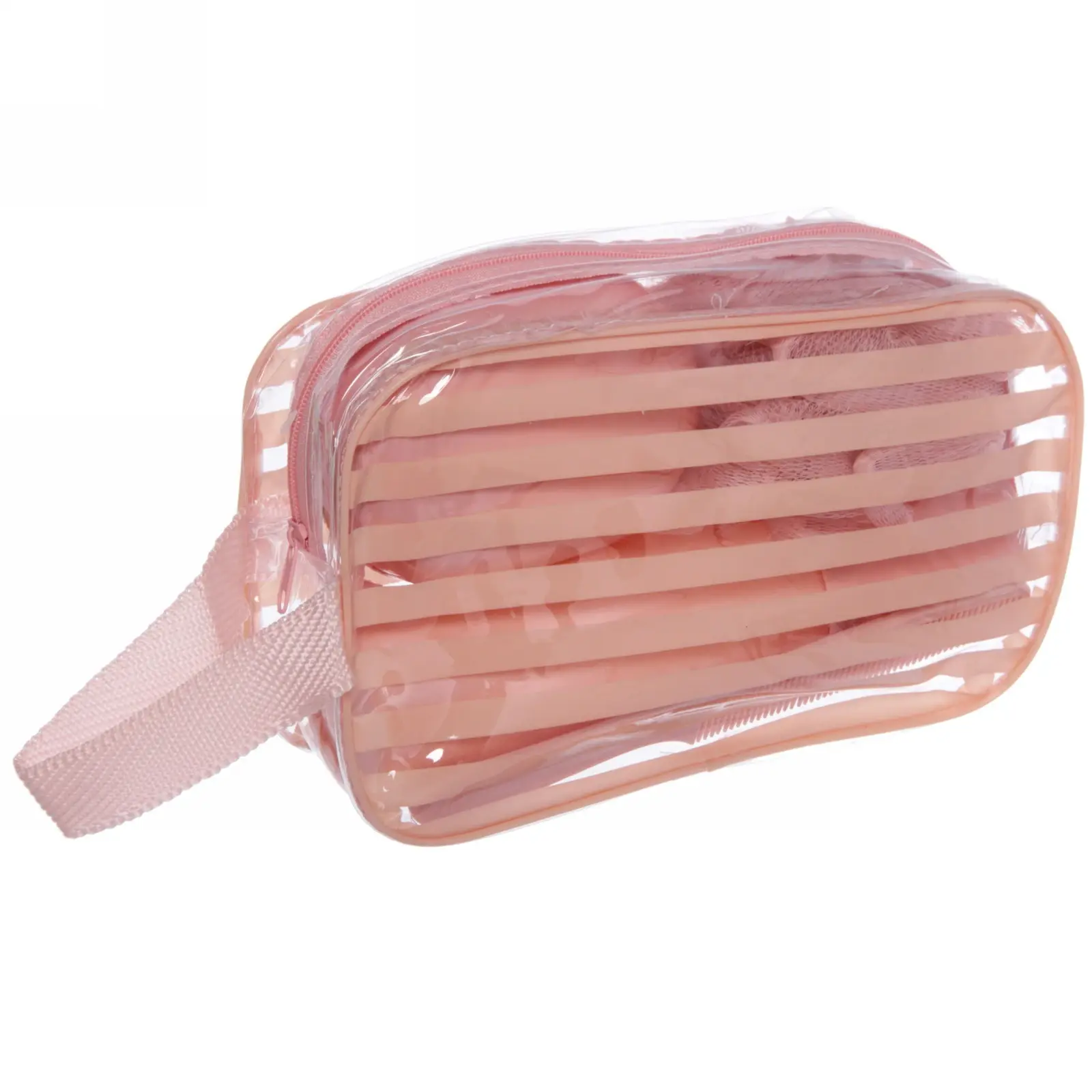 Все изделия выполнены из лёгкого и безопасного пластика, что делает их идеальными для путешествий. Косметичка достаточно вместительная, чтобы уместить дополнительные принадлежности, такие как косметика и средства для ухода за телом. Благодаря прозрачному исполнению сумочки, вы с легкостью сможете найти в ней все уложенные принадлежности.
