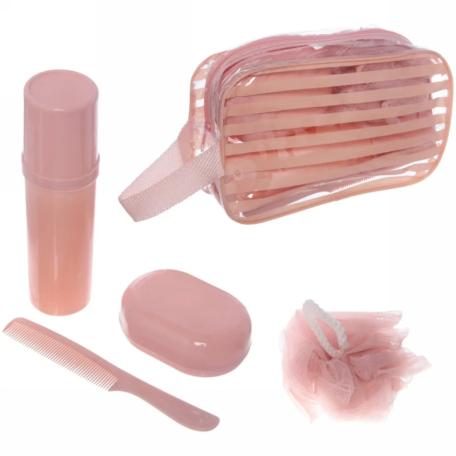 Набор подходит для использования как в поездках, так и в повседневной жизни. Мочалка-сетка обеспечивает качественное очищение кожи, а футляр для зубной щётки и пасты позволяет поддерживать гигиену в любых условиях. Закрытая мыльница защищает мыло от загрязнений, а расчёска поможет поддерживать волосы в порядке.