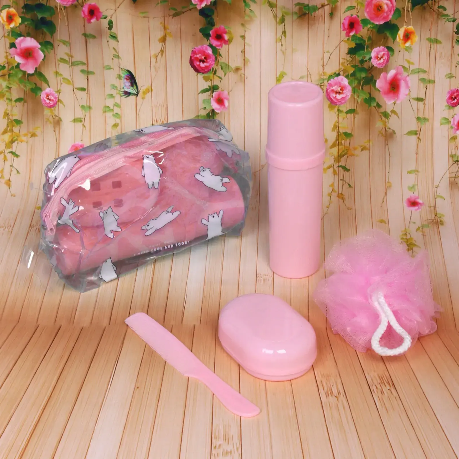 Размеры набора составляют 20х12х5,5 см, что делает его удобным для хранения и транспортировки. Все элементы набора выполнены в нежных розовых тонах, что добавляет ему привлекательности. Не упустите возможность сделать свою жизнь более комфортной с набором «Traveler - Teddy bear»!