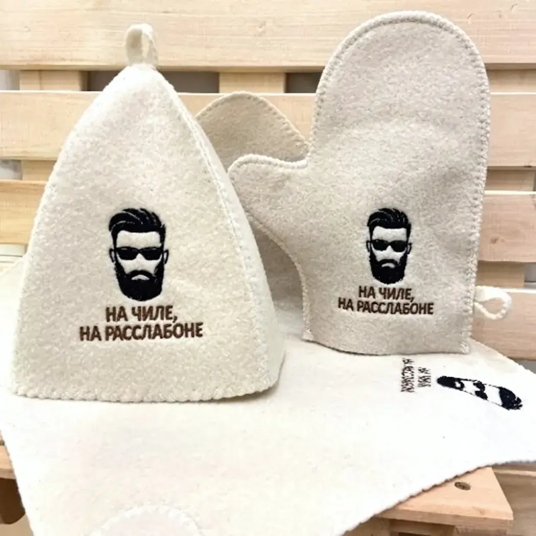 Погрузитесь в безмятежный отдых с набором банных аксессуаров 'На чиле на расслабоне'. В комплект входят три незаменимых предмета: шапка, варежка и коврик, которые защитят вас от жара и обеспечат максимальный комфорт.