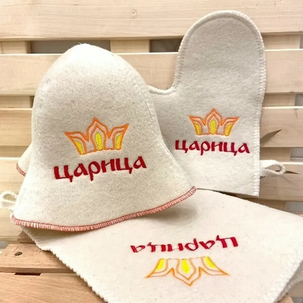 Побалуйте себя истинным spa-удовольствием с набором 'Царица', который превратит обычное посещение бани в настоящее королевское наслаждение. Мягкий войлок и изящная вышивка создают неповторимую атмосферу роскоши.