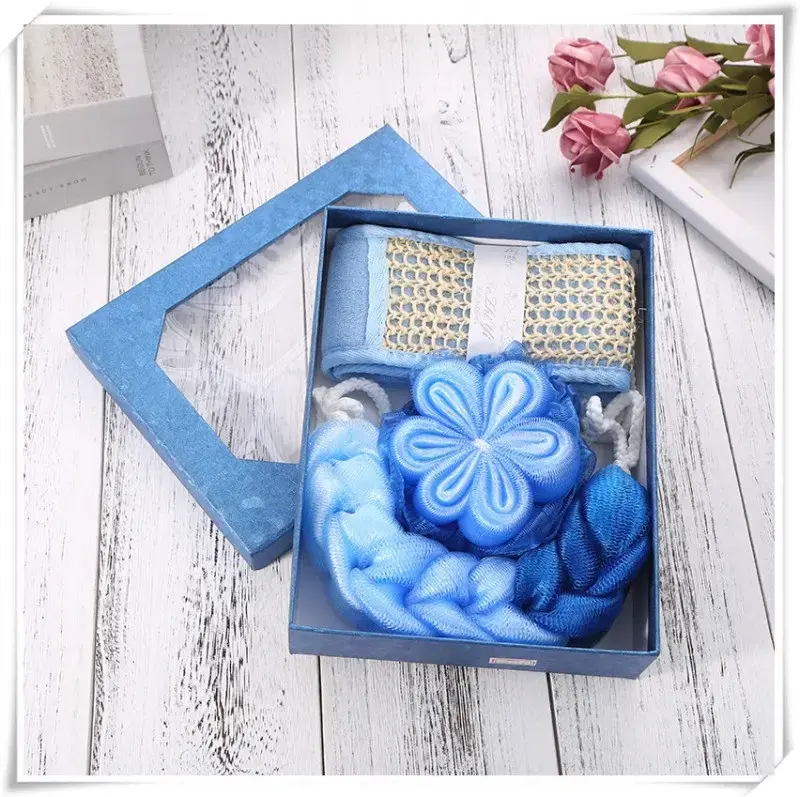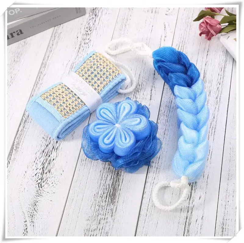 В состав набора входят три мочалки, каждая из которых имеет уникальный дизайн и функциональность. Мочалка в форме цветка идеально подходит для мягкого массажа кожи, а длинная мочалка с ручкой обеспечит удобство при мытье труднодоступных мест. Сетчатая мочалка отлично создает пену и подходит для ежедневного использования. Набор станет незаменимым спутником как в домашних условиях, так и во время путешествий.