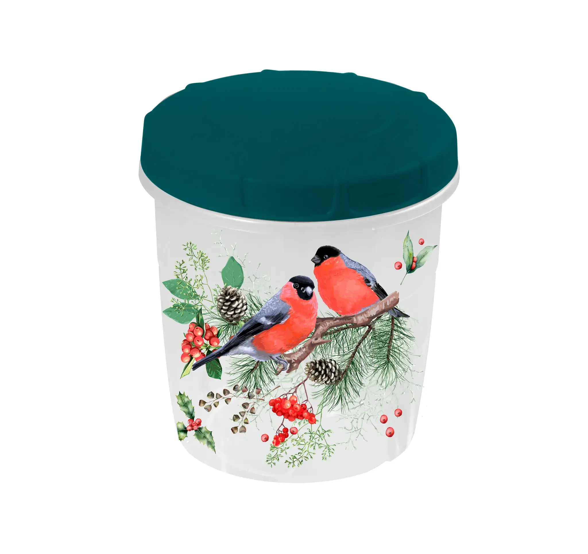 Пластиковые банки 'Снегири' не просто сохранят свежесть ваших любимых продуктов – они наполнят вашу кухню атмосферой зимней сказки. Уникальный дизайн с изображением снегирей и новогодних мотивов создаст праздничное настроение круглый год.