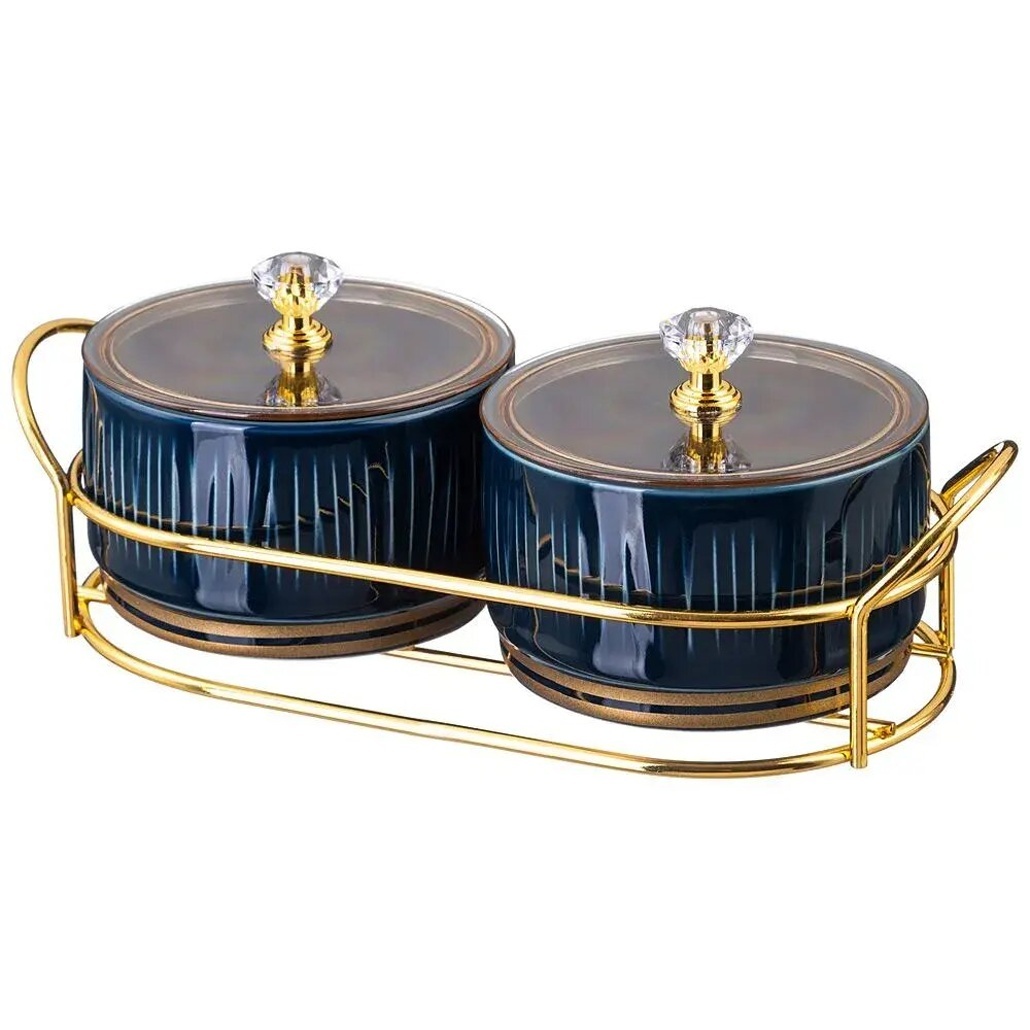Набор из двух стильных банок для специй от Lefard сочетает функциональность и эстетику кухонного пространства. Металлическая подставка с золотистым оттенком и рифлёные ёмкости в глубоком синем цвете создают гармоничный ансамбль, который подчеркнет ваш вкус.
