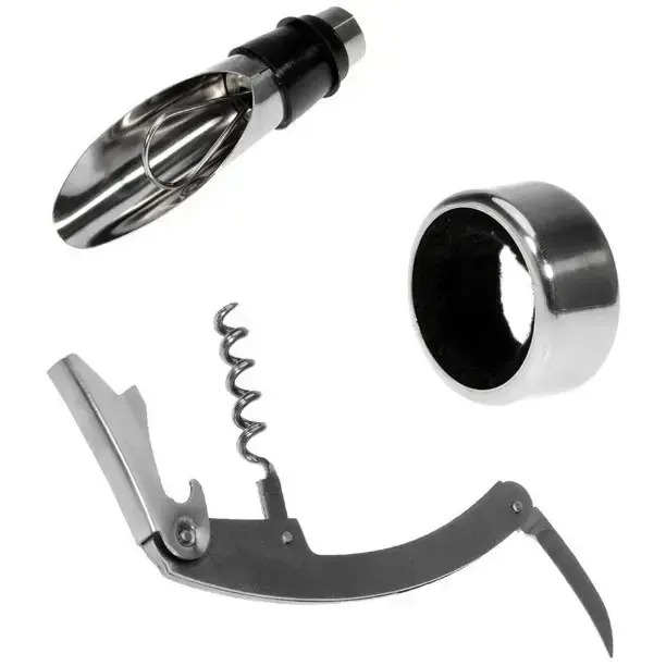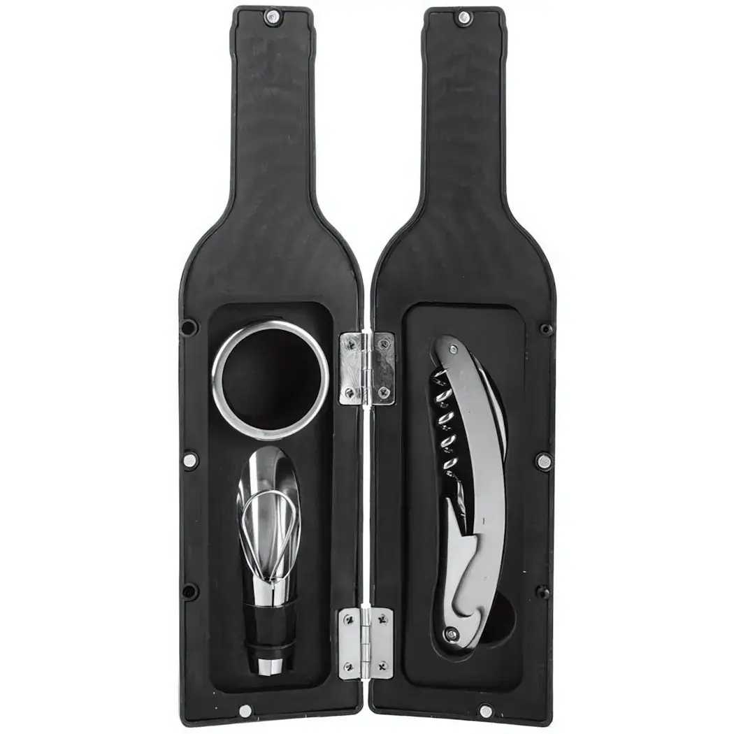 Этот стильный набор объединяет всё необходимое для комфортного сервирования напитков. Практичный футляр в форме бутылки не только сохраняет аксессуары в порядке, но и становится эффектным дополнением интерьера.