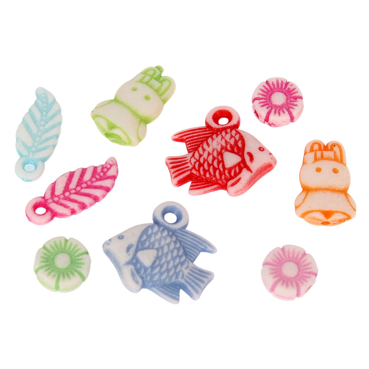 - Бусины в форме цветов, листьев и милых животных