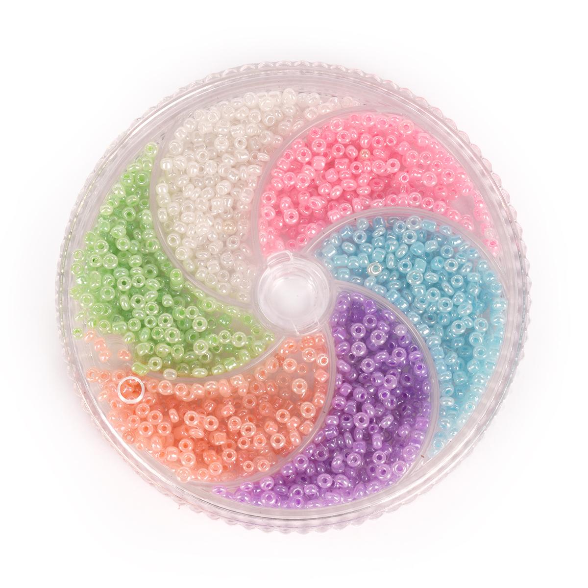 Набор создан для тех, кто любит мастерить бижутерию или украшать изделия. Круглый контейнер удобно брать с собой или хранить на рабочем столе. Каждая секция надежно защищает бисер от смешивания и просыпания, что позволит легко находить нужный цвет в процессе работы. В наборе собраны универсальные оттенки — они подходят детям, подросткам и взрослым, увлекающимся творчеством.