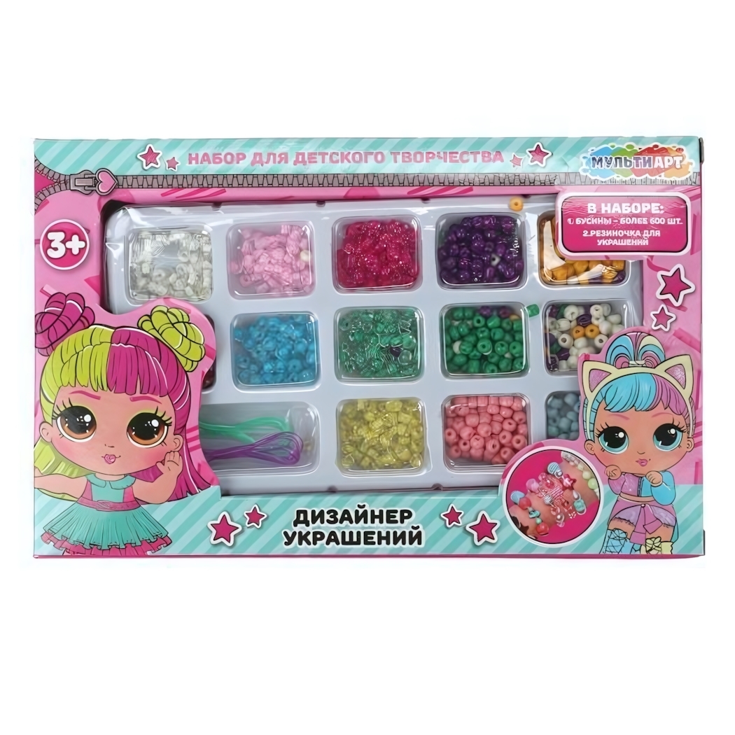 Набор бусин для творчества "Куколки модницы", 600+ шт, пластик, от 3 лет