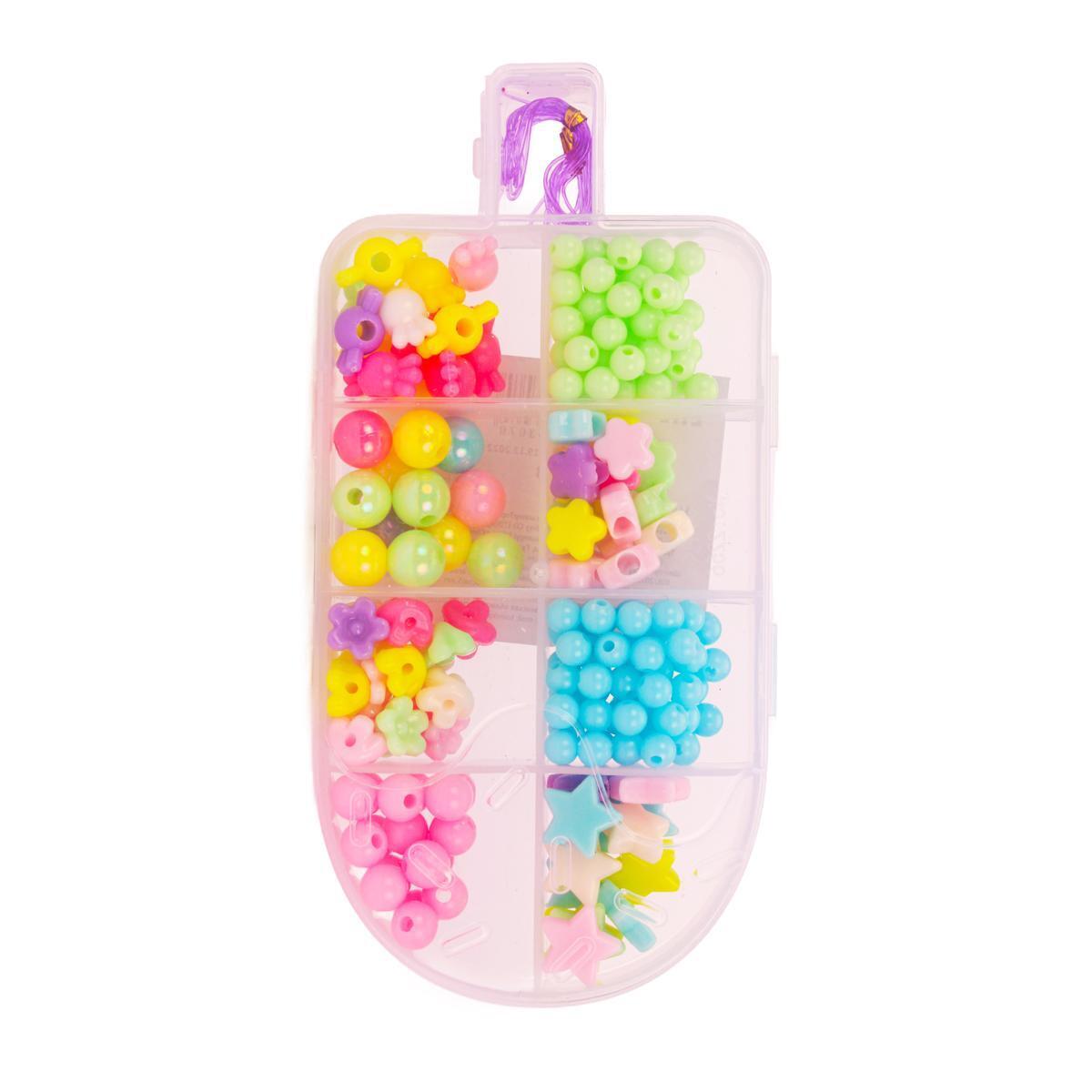 Набор бисера для творчества, 100+ бусин, цветы/звёзды/круги, пластиковый контейнер 15,5х8 см