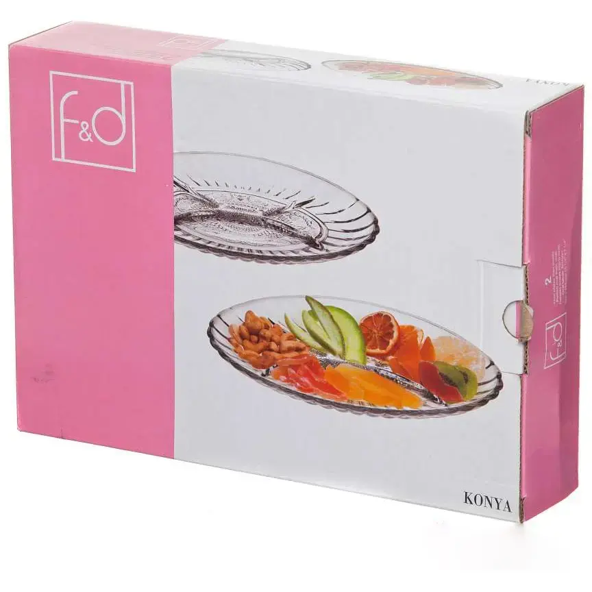 Каждая тарелка выполнена из прозрачного стекла, что позволяет красиво демонстрировать подаваемые блюда. Размеры 26х18,5 см делают их идеальными для сервировки различных закусок. Набор упакован в стильную картонную упаковку, что делает его отличным подарком для друзей и близких.