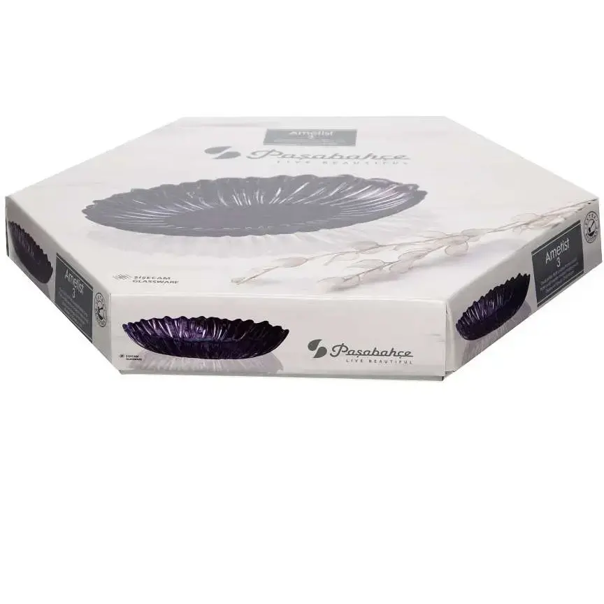 Погрузитесь в мир изысканности и стиля с набором блюд «Аметист». Эти глубокие блюда, выполненные из качественного стекла, не только привлекут внимание ваших гостей, но и станут незаменимыми помощниками в сервировке. Их волнистая форма и рифленые края придают им уникальный вид, а фиолетовый цвет с черными оттенками добавляет нотку роскоши.