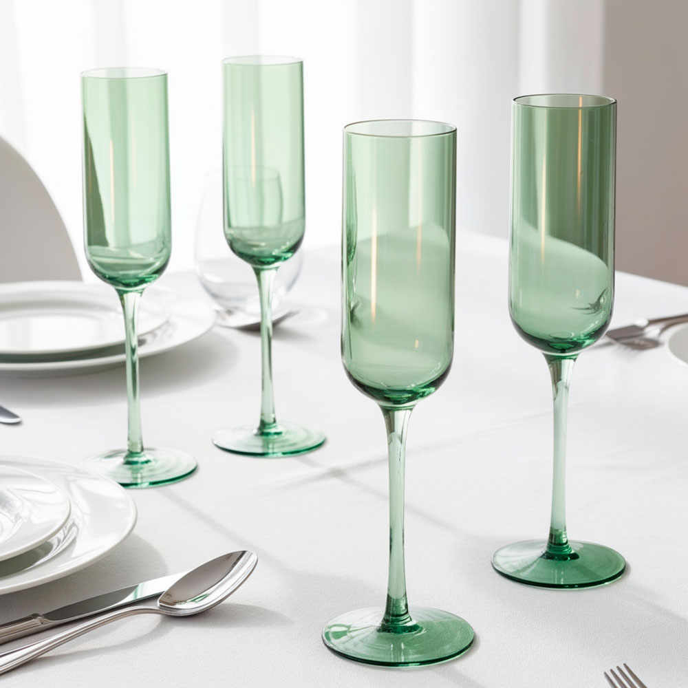 Этот набор из 4 бокалов объемом 200 мл идеально подходит для подачи шампанского, игристых вин или праздничных напитков. Их элегантная вытянутая форма и износостойкое стекло создают изысканный стиль, а зеленый оттенок придает особую атмосферу вашему столу и декору.