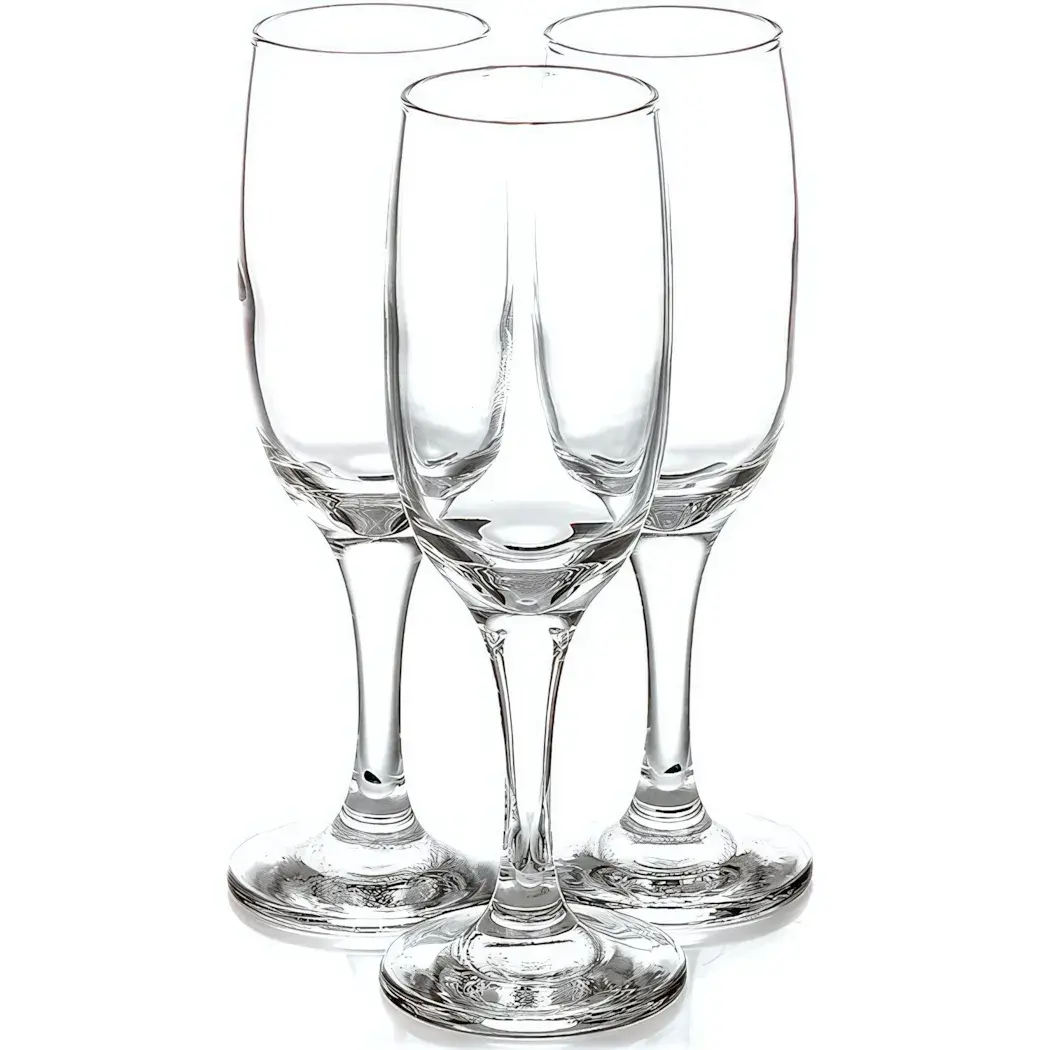 Каждый бокал имеет стандартный размер 190 мл, что делает его идеальным для подачи шампанского. Прозрачный цвет и лаконичный дизайн позволяют сочетать их с любой сервировкой. Набор состоит из трех бокалов, что делает его удобным для небольших встреч и праздников.