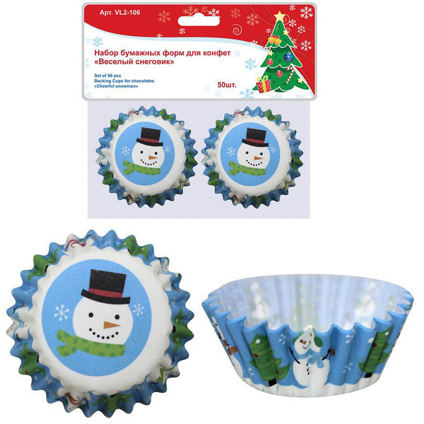 В наборе 50 штук форм, диаметр верхней части составляет 6 см, а высота — 2 см. Формы имеют волнистую форму и украшены изображением снеговиков, что делает их идеальными для новогодних праздников. Храните формы в сухом месте, вдали от источников тепла и солнечных лучей, при температуре от 0 до 20 градусов.