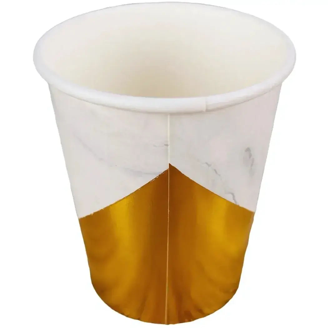 Набор бумажных стаканов «Стильный мрамор», 250 мл, 6 шт, золотистое основание, эко-материал