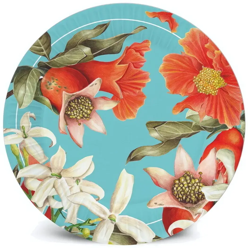 Выбирая набор бумажных тарелок «Гранат», вы получаете не только практичность, но и стильный элемент декора. Яркие цветы на светло-голубом фоне создают позитивное настроение и подчеркивают атмосферу праздника. Эти тарелки легко комбинируются с другими элементами сервировки, что позволяет вам создать уникальный стиль вашего стола.
