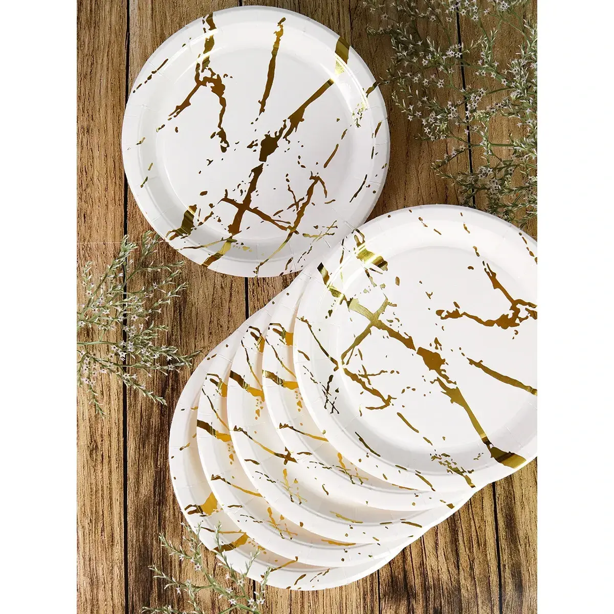 Не упустите возможность сделать ваш праздник незабываемым с набором бумажных тарелок «Белый мрамор»!