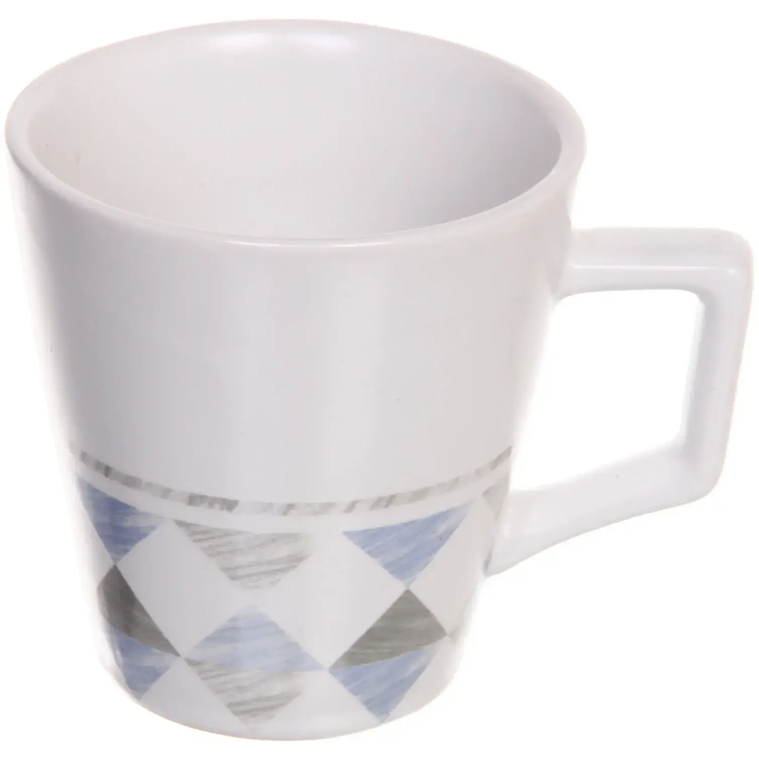 Комплект из 6 керамических кружек и блюдец с вертикальной подставкой превратит сервировку в удовольствие. Геометрический узор в серо-голубой гамме добавит стиля вашему столу, а продуманная конструкция сэкономит место на кухне.