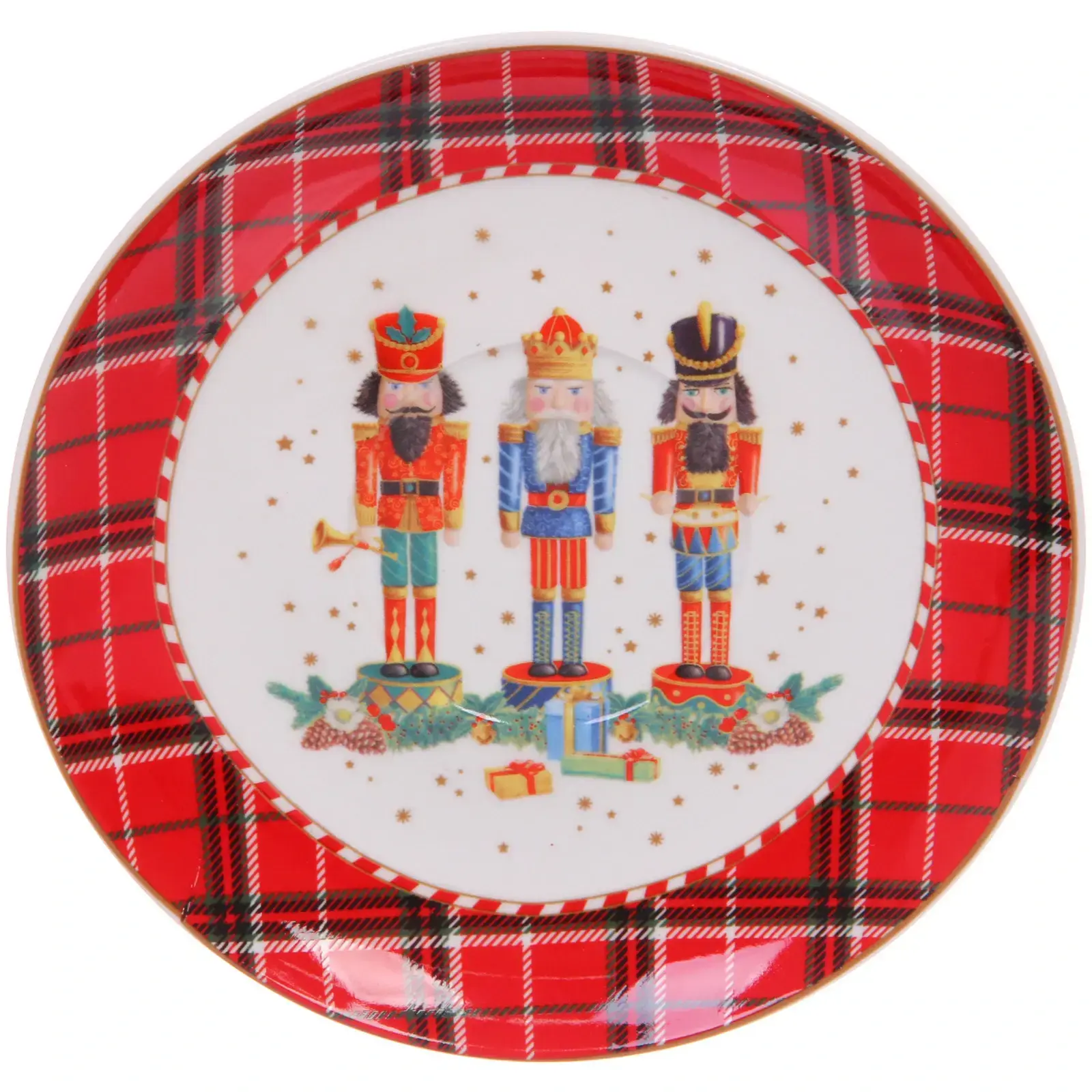 Каждый элемент набора выполнен из прочной керамики, которая сохраняет температуру напитков и безопасна для ежедневного использования. Красно-белая клетчатая отделка и золотистые акценты создают неповторимый праздничный стиль.