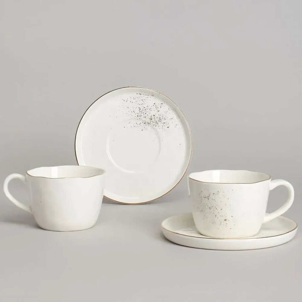 Комплект сочетает изысканный дизайн с функциональностью: устойчивые блюдца предотвращают проливание, а эргономичная форма чашек обеспечивает комфортное использование. Благодаря лаконичному декору набор органично впишется как в современный, так и в классический интерьер.