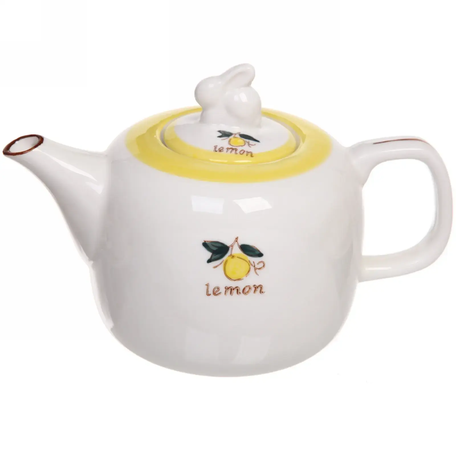 Чайный набор «Lemon classic», 5 предметов: чайник 500 мл, 2 кружки, 2 блюдца, керамика, бело-желтый дизайн