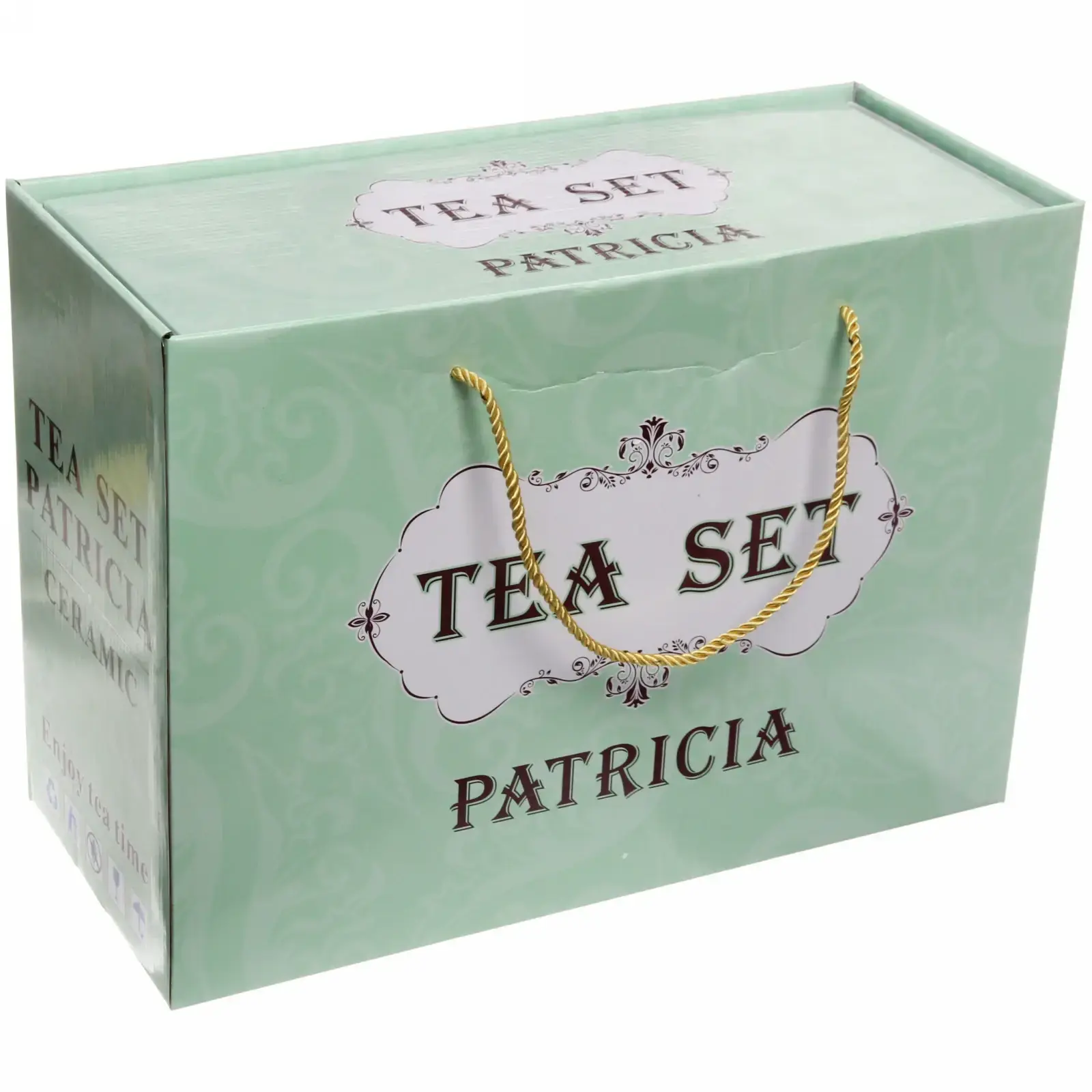 Размеры: чайник 18×15 см, кружки Ø8×10 см, блюдца Ø14 см. Вес набора — 2.7 кг. Упакован в подарочную коробку с ручкой и декоративной отделкой — готов к презентации без дополнительной подготовки.