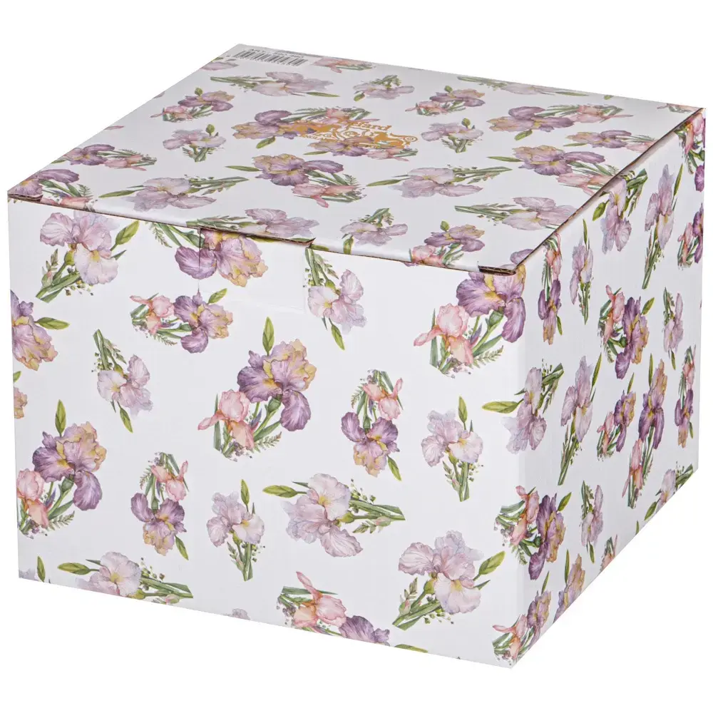 - Эксклюзивный дизайн с нежными ирисами, который привлекает внимание.