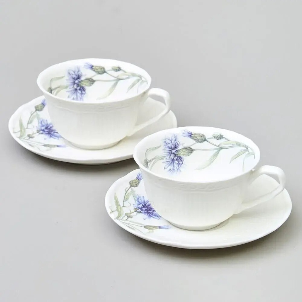 Набор включает 2 чашки и 2 блюдца. Изделия произведены из высококачественного фарфора, безопасного для здоровья. Рекомендуется бережная ручная мойка для сохранения безупречного внешнего вида.