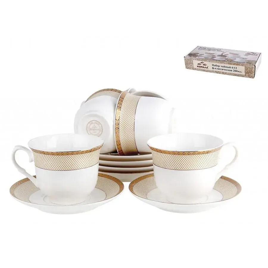 Набор из 12 предметов «Люксор» сочетает в себе изысканный классический дизайн и практичность фарфоровой посуды. Золотистые акценты на белоснежной поверхности создают атмосферу роскоши, превращая каждое чаепитие в особое событие.