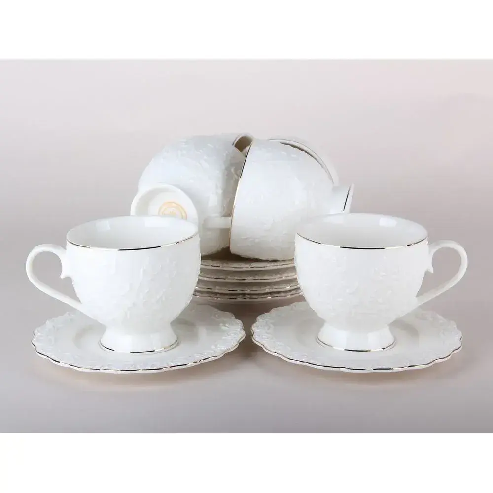 Погрузитесь в атмосферу уюта и изысканности с чайным сервизом «роза» — лаконичным акцентом для вашего дома. Гладкие белые поверхности чашки и блюдца дополнены элегантной тонкой золотистой линией по краю, а рельефный узор создает ощущение роскоши даже в повседневных моментах. Такой сервиз станет украшением любого стола и идеально подойдет для неспешного чаепития или встречи с гостями.