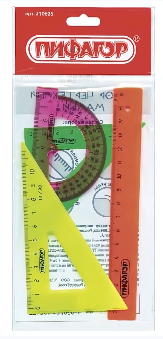 Набор «Пифагор» — ваш надежный помощник в учебе и творческих проектах. Укомплектован всем необходимым для построения углов, измерения и создания аккуратных схем. Неоновые элементы делают работу наглядной, а прочный пластик выдерживает ежедневное использование.