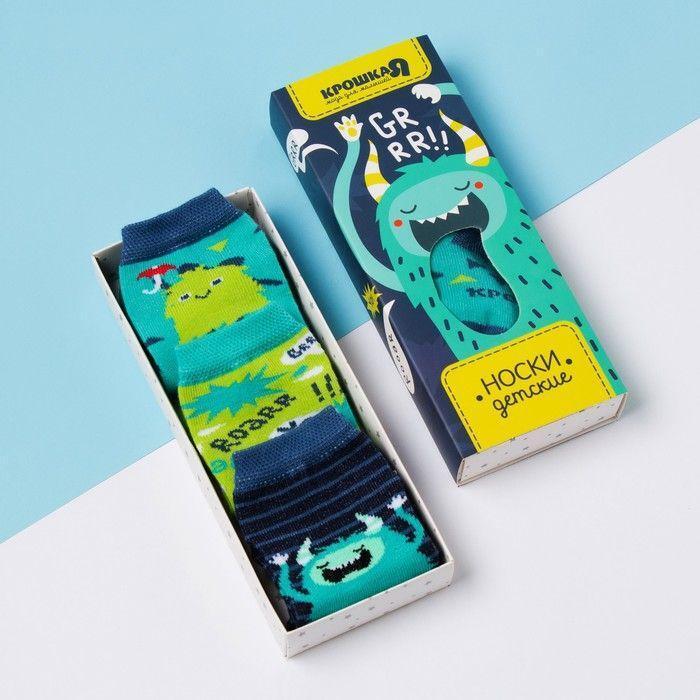 Детские носки «Монстры» 3 пары, 100% хлопок, размер 10-12, синий/зеленый/голубой
