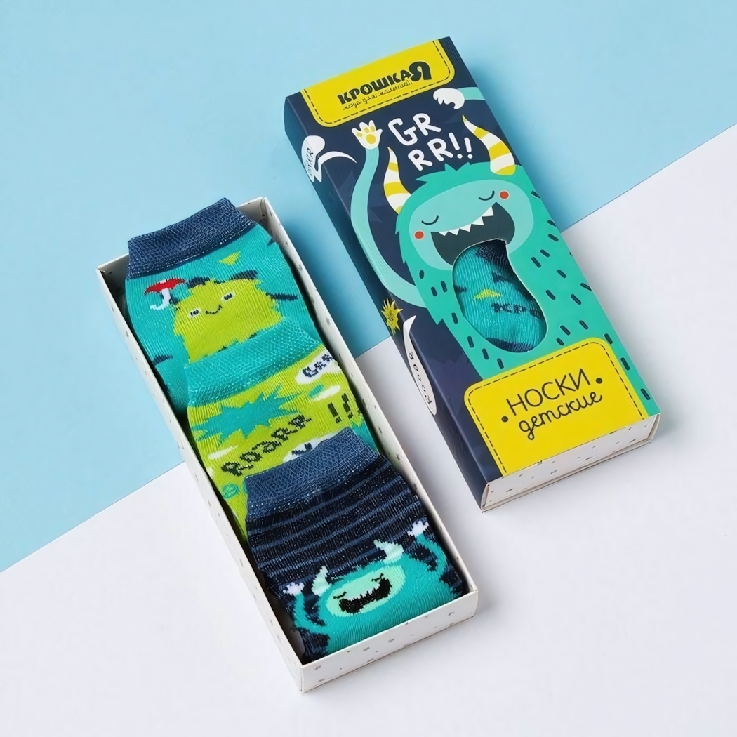 Практичный выбор для заботливых родителей: сочетание веселья, качества и функциональности. Носки «Монстры» бренда Крошка Я — удачный компромисс между детскими предпочтениями и требованиями к комфорту.