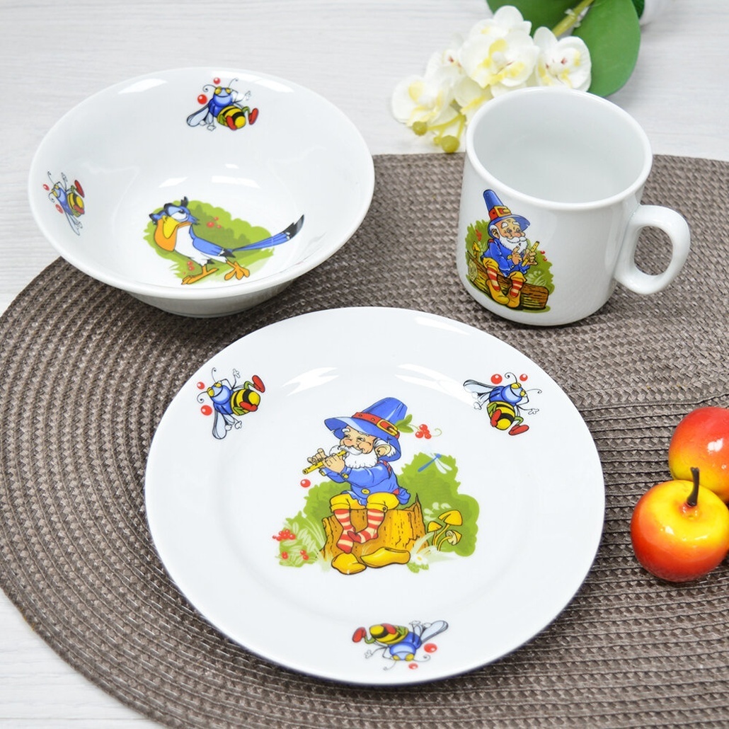 Набор детской посуды 'Лесовичок' 3 предмета, фарфор, рисунки сказочных персонажей