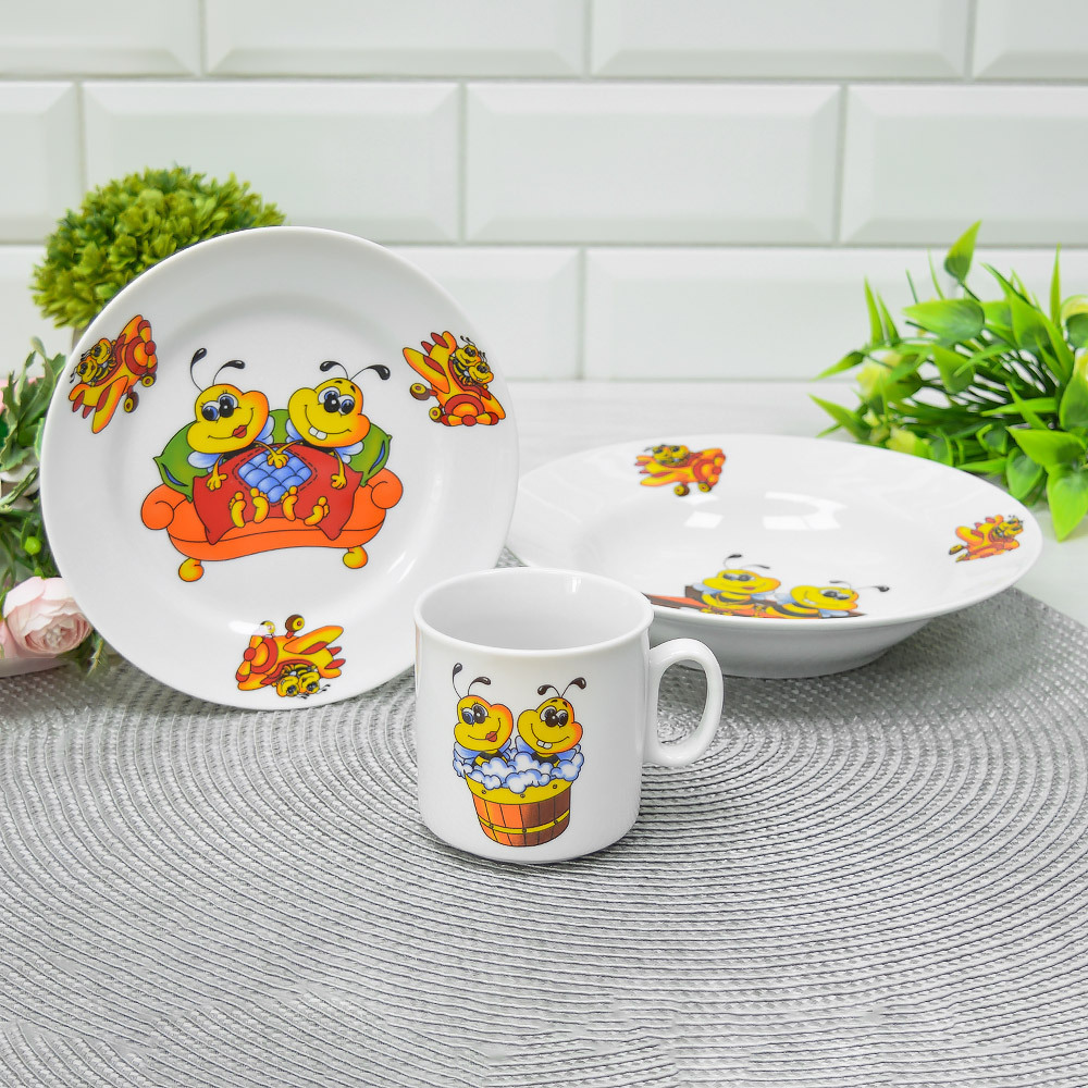 Набор детской посуды 'Идиллия Пчелы', 3 предмета, фарфор, веселый дизайн