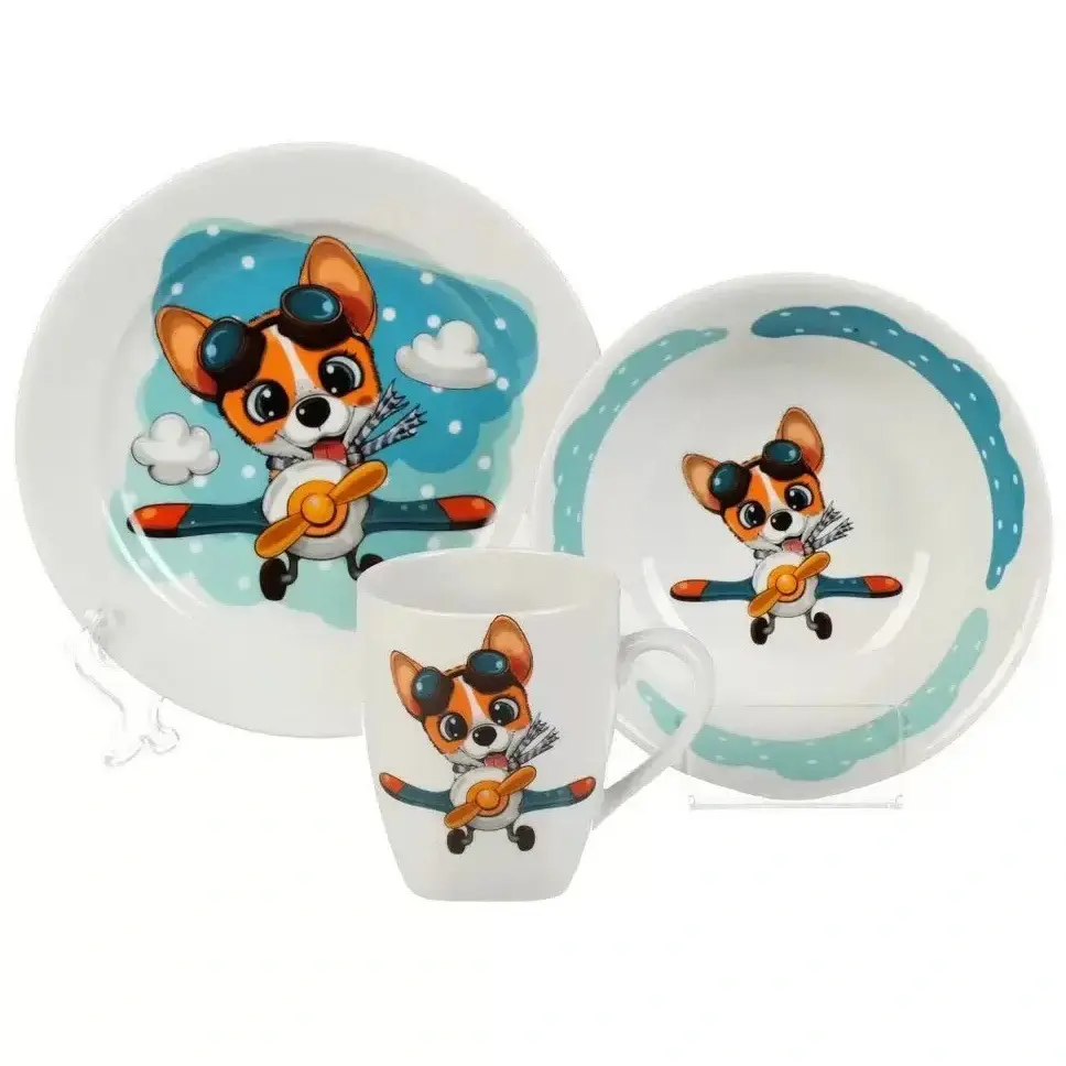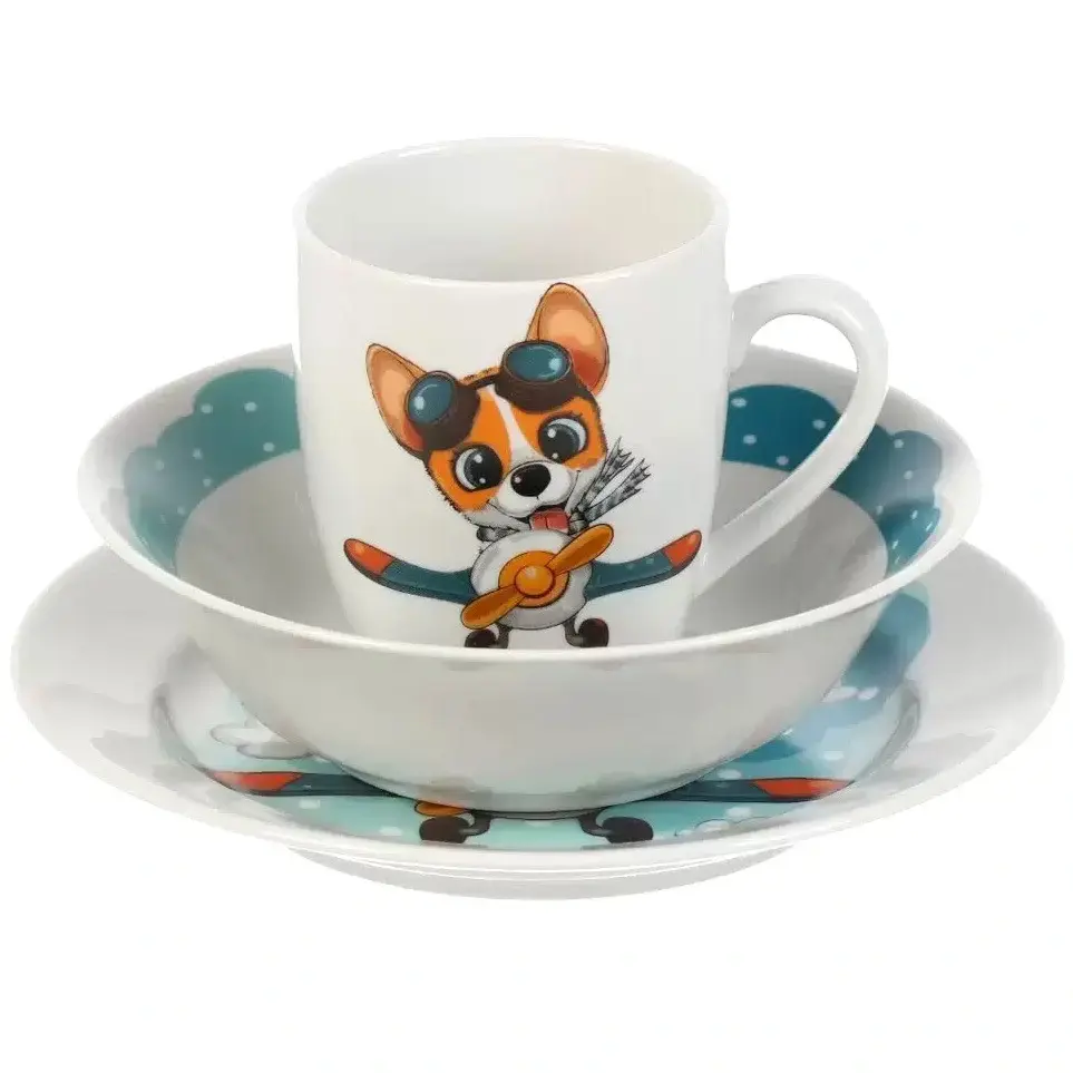 Набор "Летчик Корги" состоит из трех предметов, продуманных для удобства малышей: