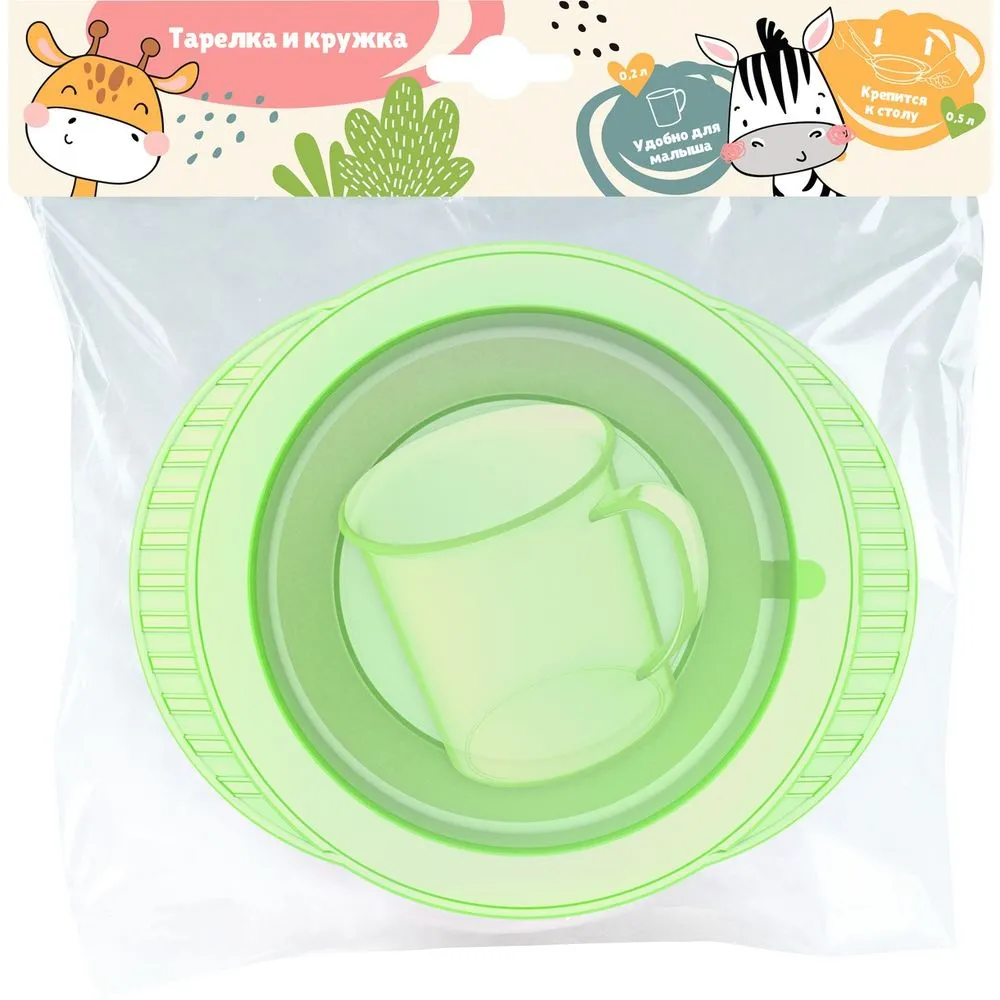 Набор детской посуды Giraffix "Тарелка и кружка", зелёный, кружка 0,2л, тарелка на присоске