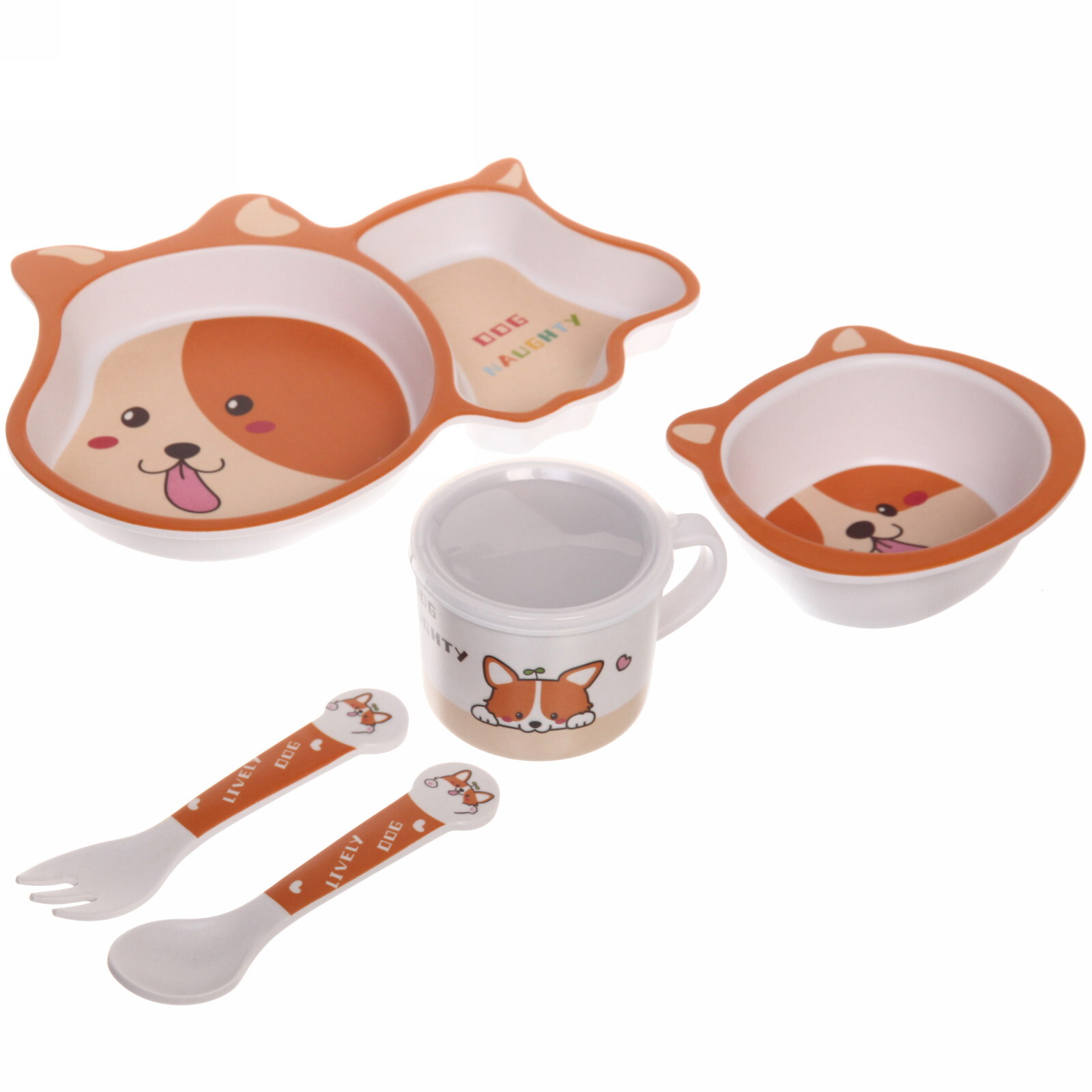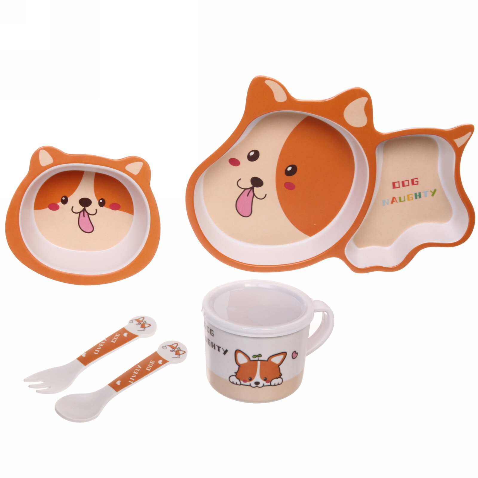 Набор детской посуды «Щенок», бамбук, 5 предметов, безопасный, антискользящее дно