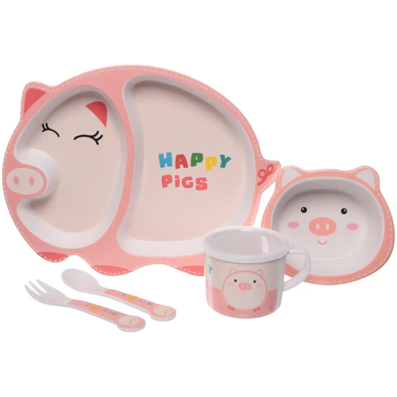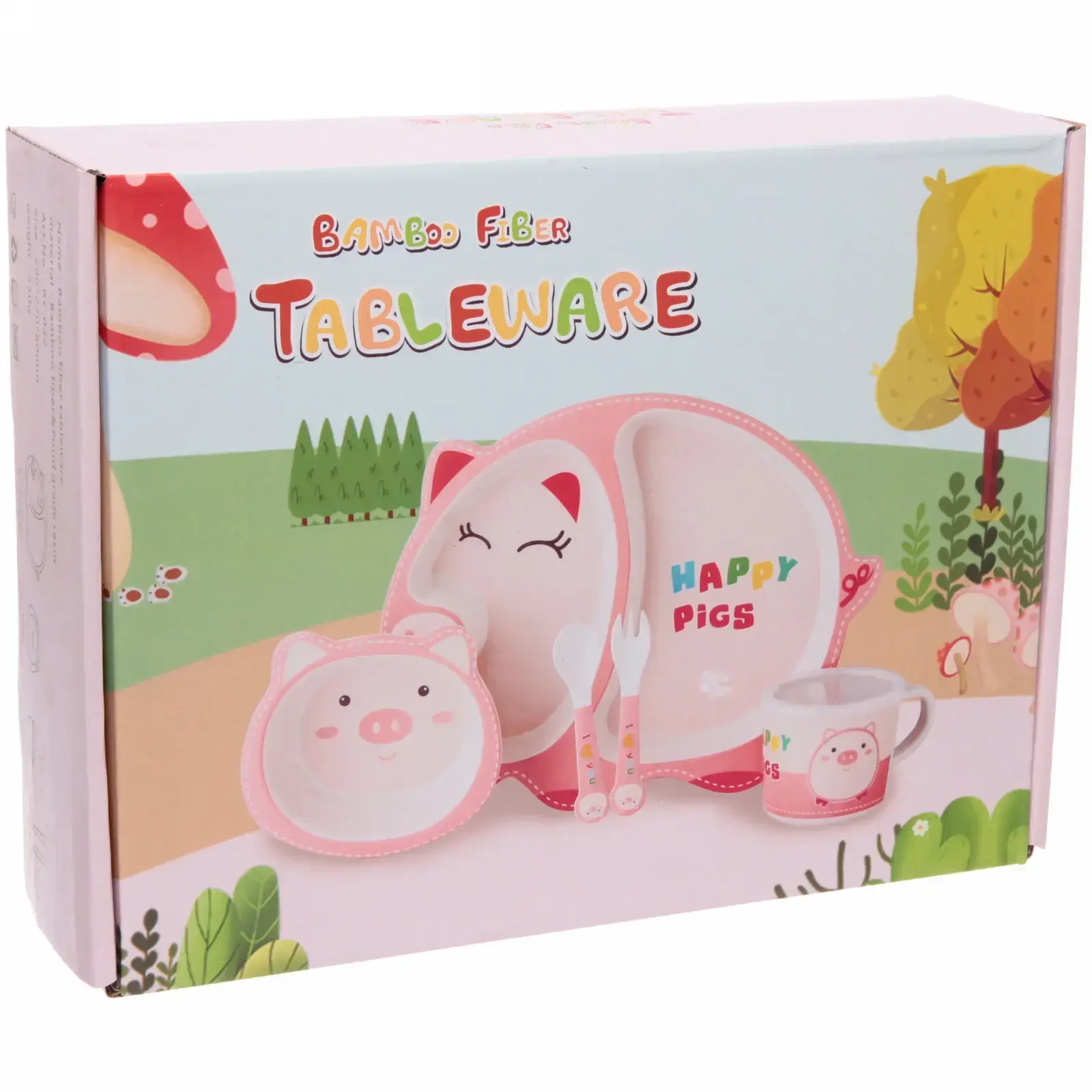 Набор детской посуды из бамбука 'Свинка', 5 предметов, легкий и безопасный