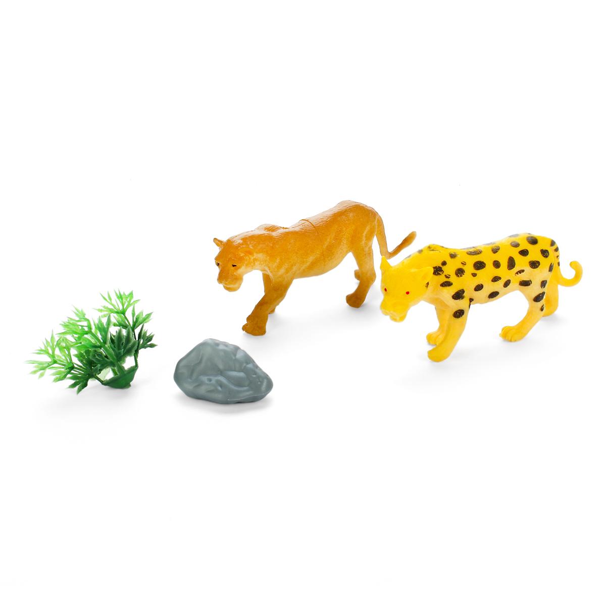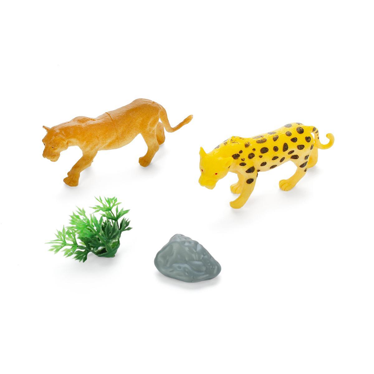 Этот комплект из двух фигурок животных — льва и ягуара — создан для entusiastичных детей и коллекционеров. Размер упаковки позволяет легко разместить его дома или в игровой зоне, а материалы из пластика и ПВХ обеспечивают долговечность и безопасность для малыша. В набор входит искусственная трава и камень, которые помогают создавать реалистичные композиции и развивать воображение.