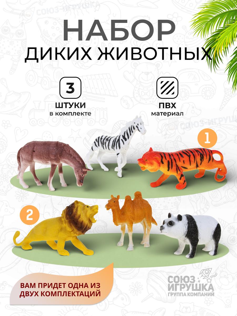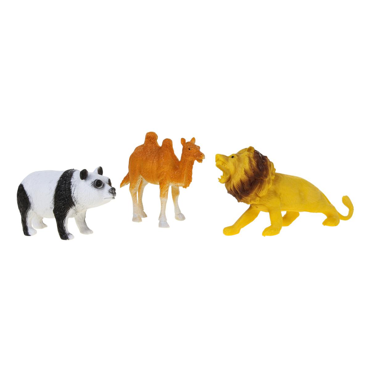 В ассортименте представлены разные варианты набора (например, лев, верблюд и панда или тигр, зебра и лошадь). Отгружается один набор из 3 фигурок, вариант определяется случайным образом. Прозрачная упаковка позволяет видеть содержимое, что удобно при выборе подарка.