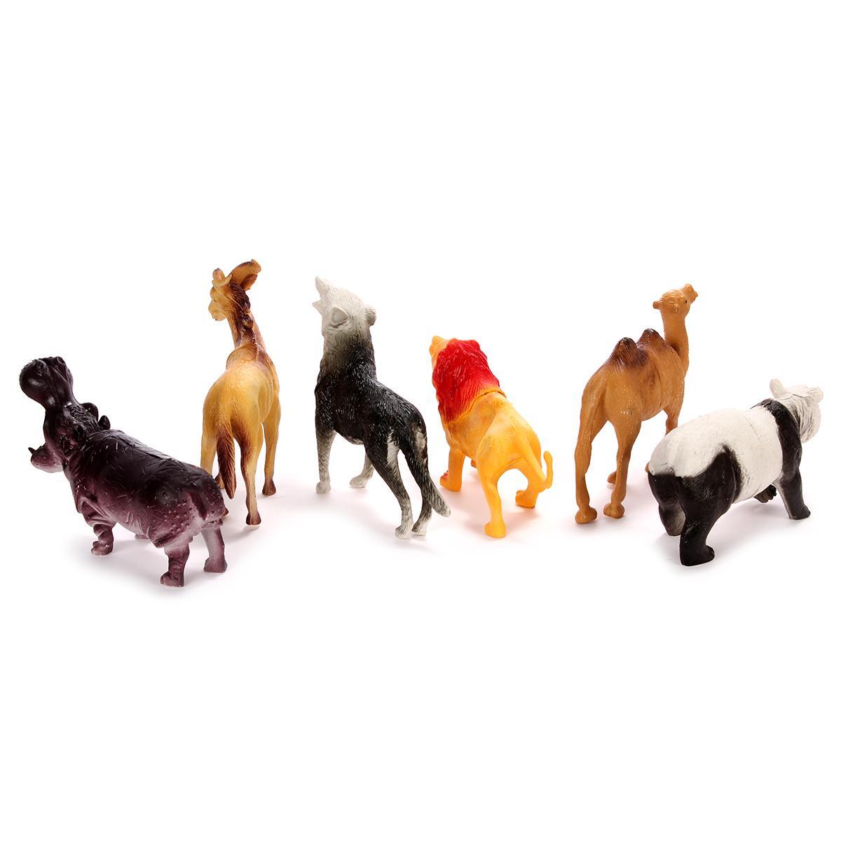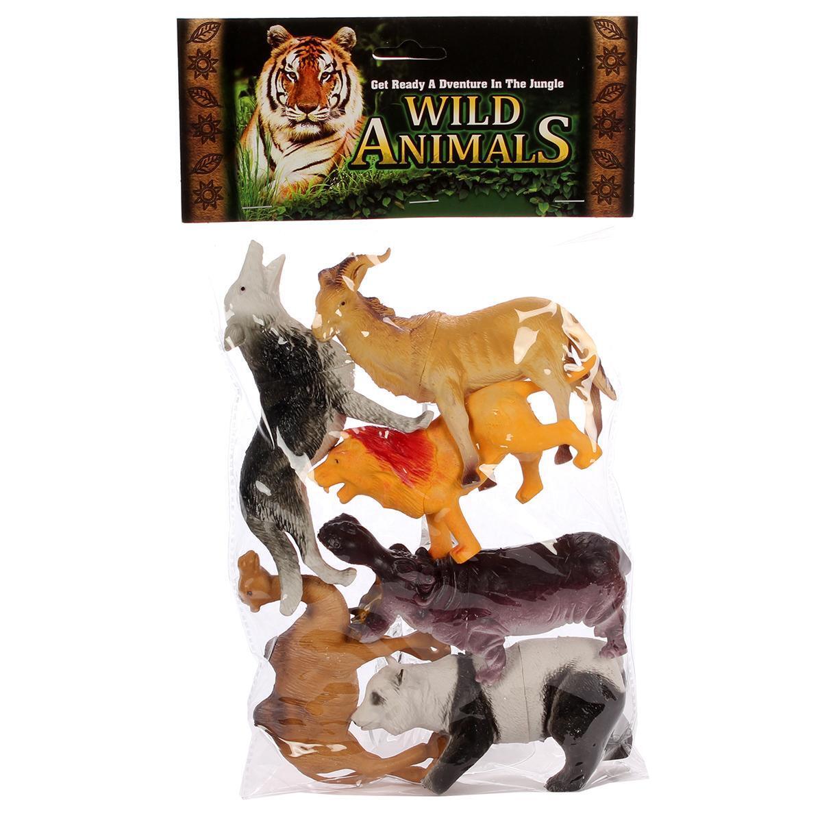 В наборе представлены шесть различных диких животных, таких как лев, верблюд, волк и другие. Размеры фигурок варьируются от 14 до 17 см, что делает их удобными для маленьких ручек.