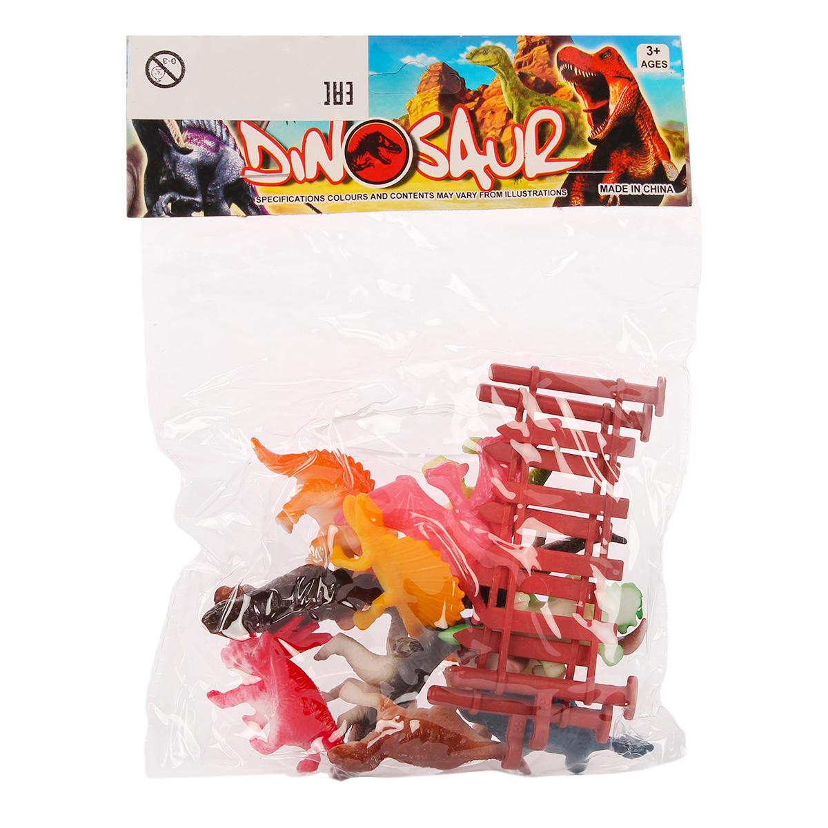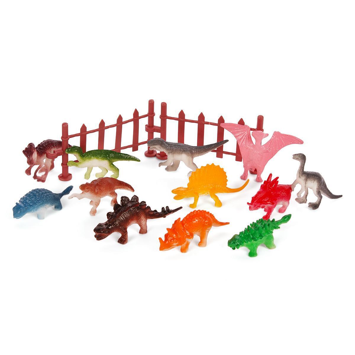 В комплект входят 12 разнообразных фигурок динозавров разного цвета и формы, а также забор, который можно использовать для создания сцен и раскрашенных площадок. Размер фигурок — примерно 6.5 см, что удобно для рук ребенка и отлично подходит для игры на столе или на полу. Материалы — пластик и ПВХ, что обеспечивает долгий срок службы и устойчивость к активной игре.