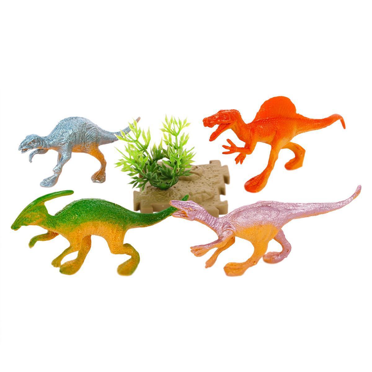 Этот набор из 4 пластиковых фигурок динозавров станет отличным дополнением для детской игры и декорации интерьера. Каждая фигурка выполнена из прочного пластика и ПВХ, окрашена в яркие цвета: зеленый, оранжевый, розовый, прозрачный с градиентом, что привлекает внимание и развивает фантазию. Размер игрушек позволяет использовать их в детских играх, моделировать сцены и создавать уникальные композиции.