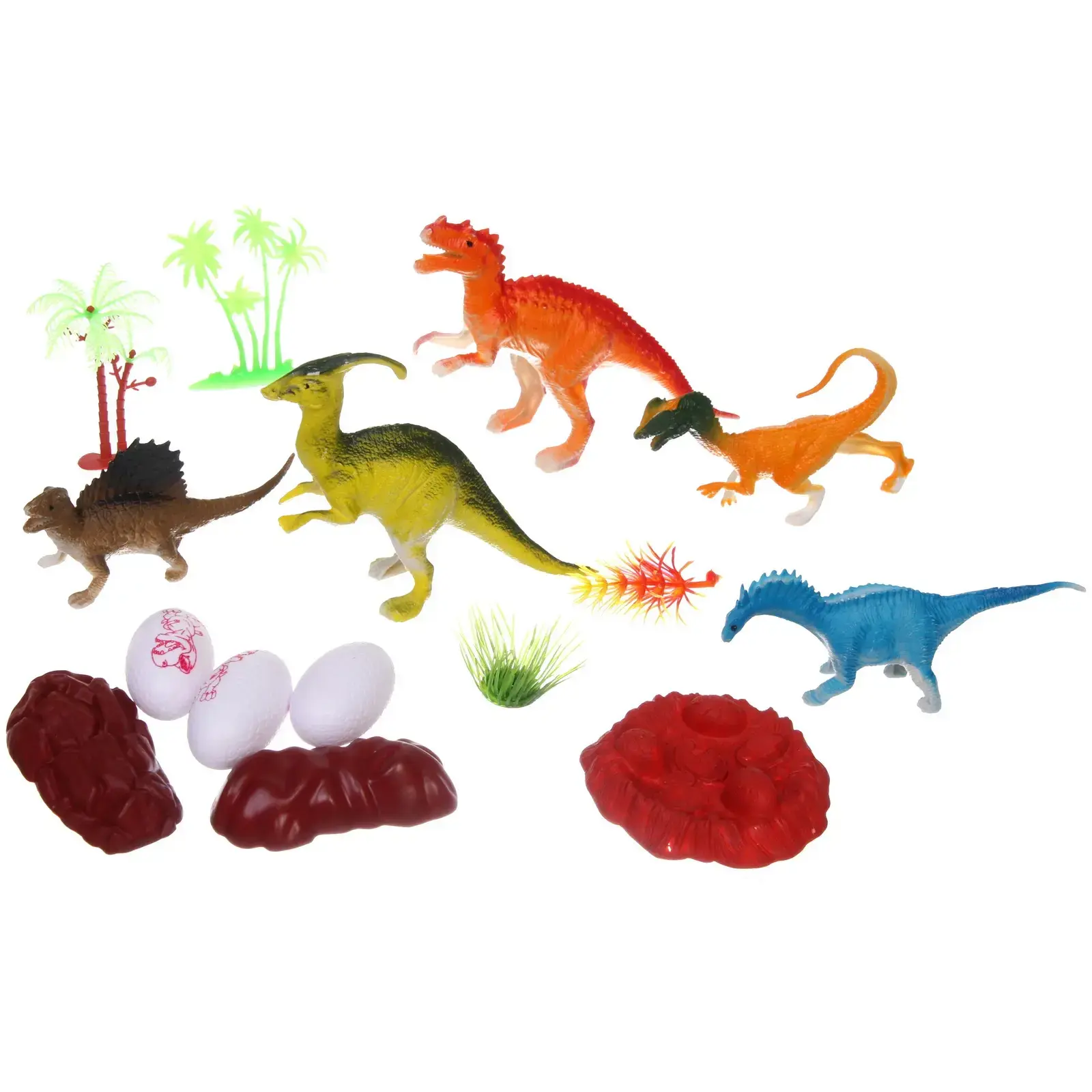 Набор включает 15 пластиковых фигурок динозавров, а также аксессуары, такие как яйца и элементы растительности. Игрушки подходят для детей старше 3 лет и идеально подходят для игры как дома, так и на улице. Дети могут создавать свои собственные истории, развивая креативность и социальные навыки.