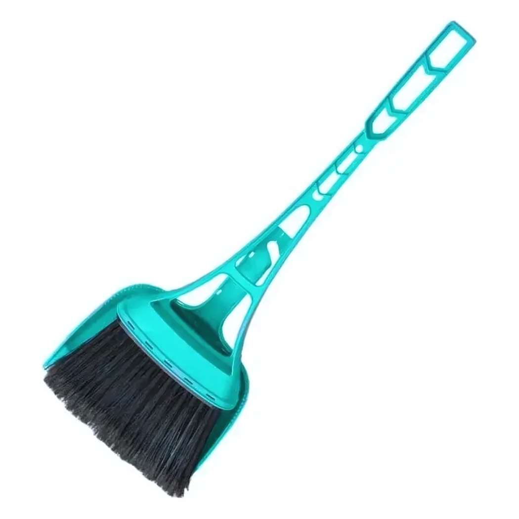 Веник оснащен упругими щетинками с двойным армированием, которые эффективно захватывают пыль и крупные частицы. Совок имеет закругленные края и оптимальный угол наклона — 55° для комфортного подметания. Комплект выполнен в аквамариновом цвете, устойчивом к выцветанию.