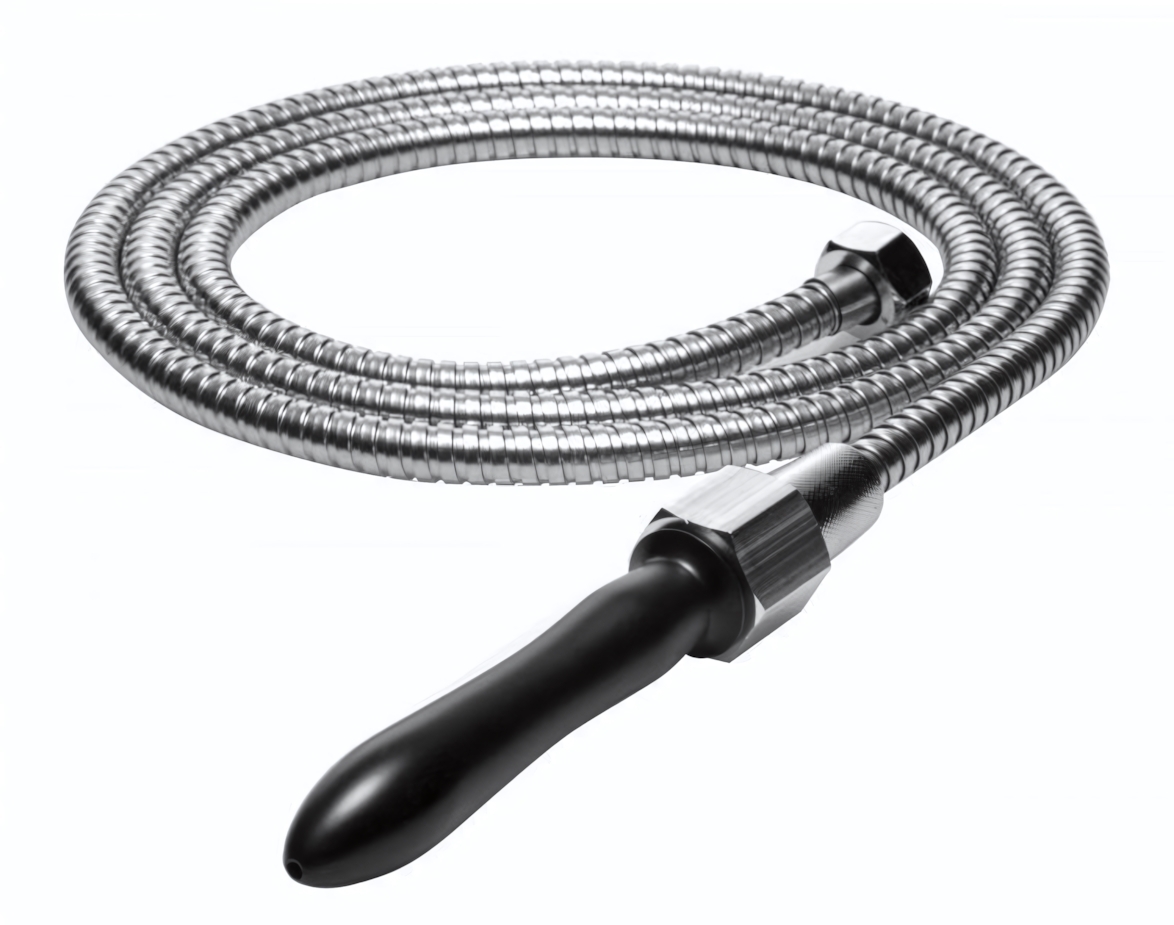 - Изготовлен из качественных материалов: шланг из металла и наконечник из ПВХ.