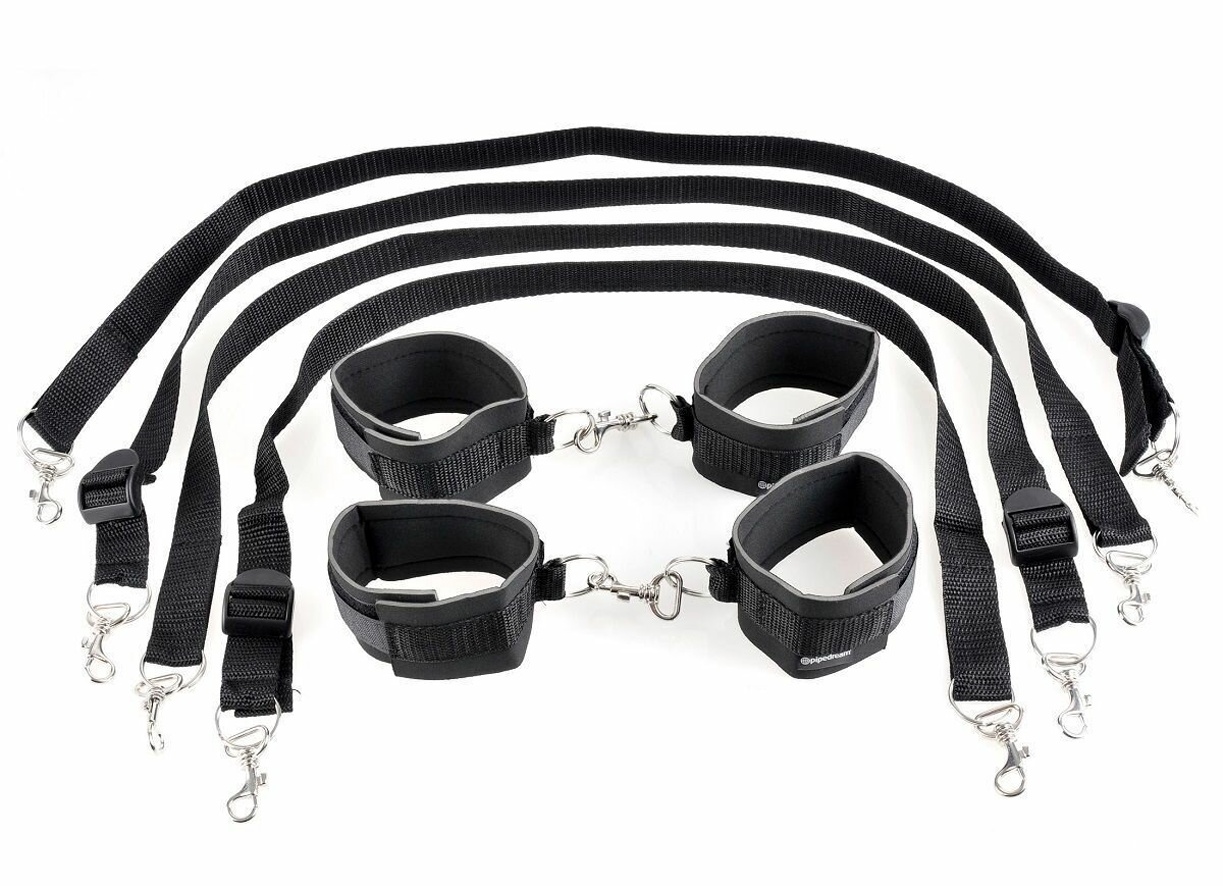 Набор для бондажа 'Cuff And Tether', черный, регулируемые манжеты и ремни