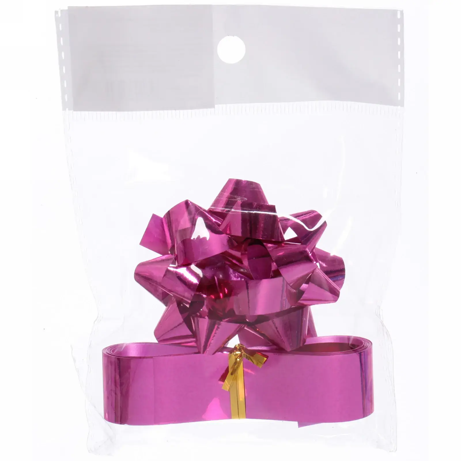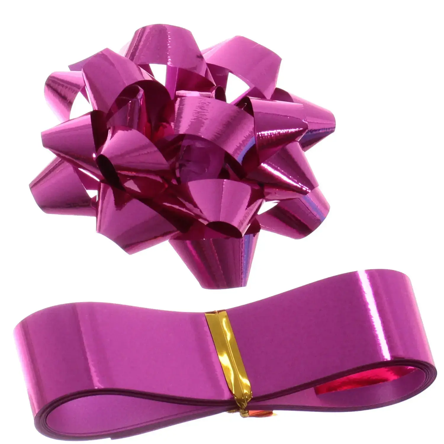 В набор входят объемный бант размером 6 см и блестящая лента шириной 2 см и длиной 3 м. Бант выполнен из фиолетовой фольгированной бумаги, а лента — из качественного ПВХ, что обеспечивает долговечность и привлекательный внешний вид. Набор подходит для упаковки подарков на любые праздники: дни рождения, свадьбы, новогодние торжества и другие важные события.