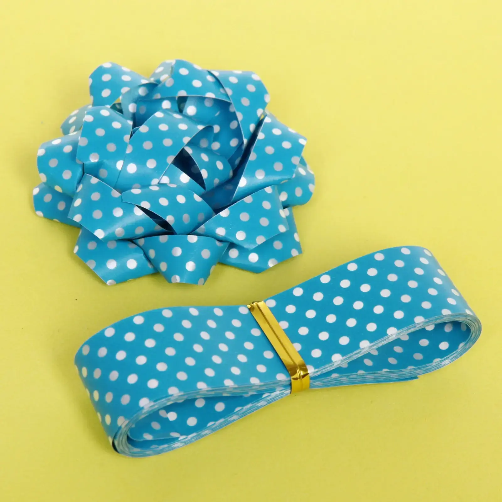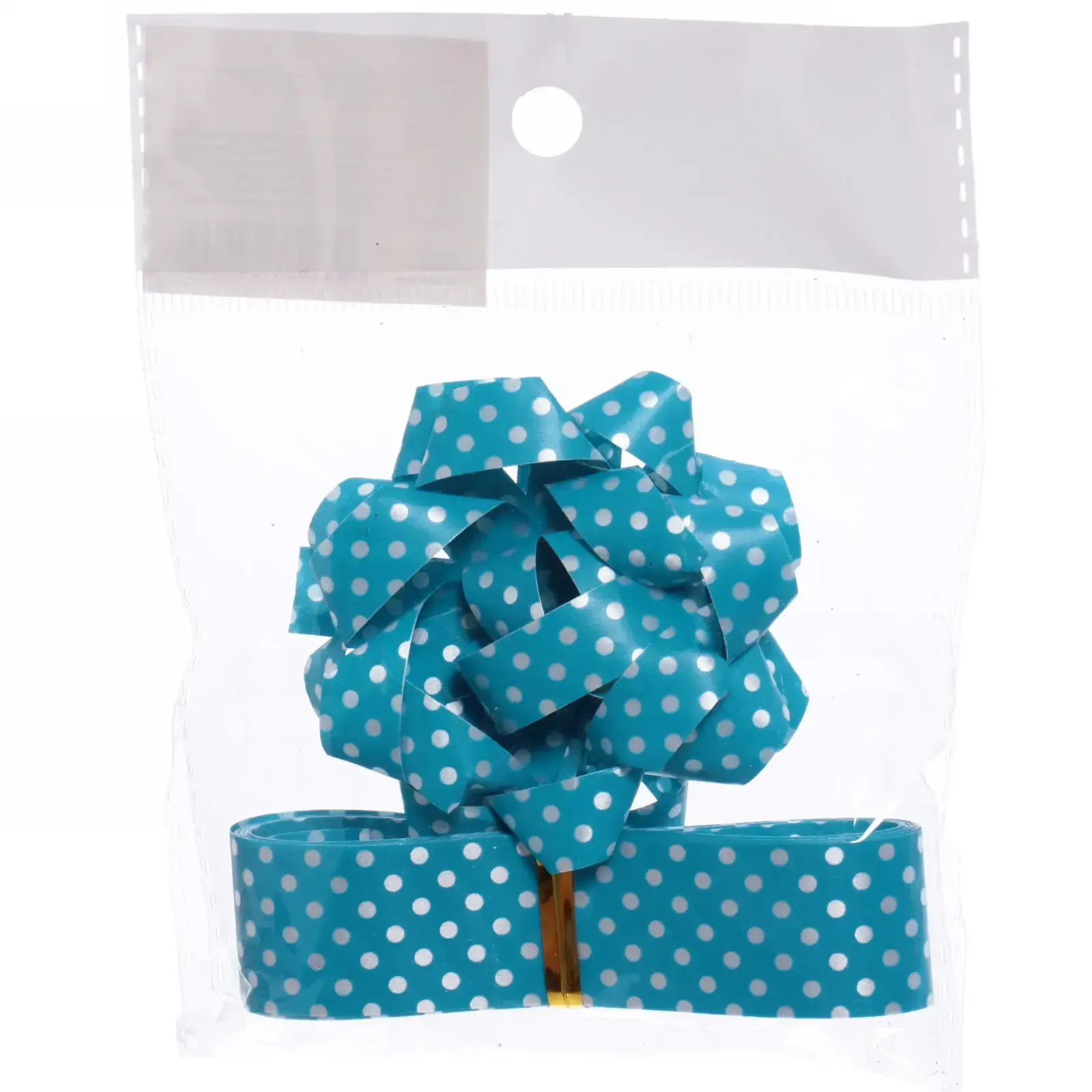 Выбор этого набора — это не только практичность, но и стиль. Голубой цвет с белыми горошками добавляет игривости и свежести, а объемная форма банта делает его центром внимания. Лента гладкая и блестящая, что придаёт подарку элегантный вид. Используйте набор для создания уникальных упаковок, которые запомнятся вашим близким.